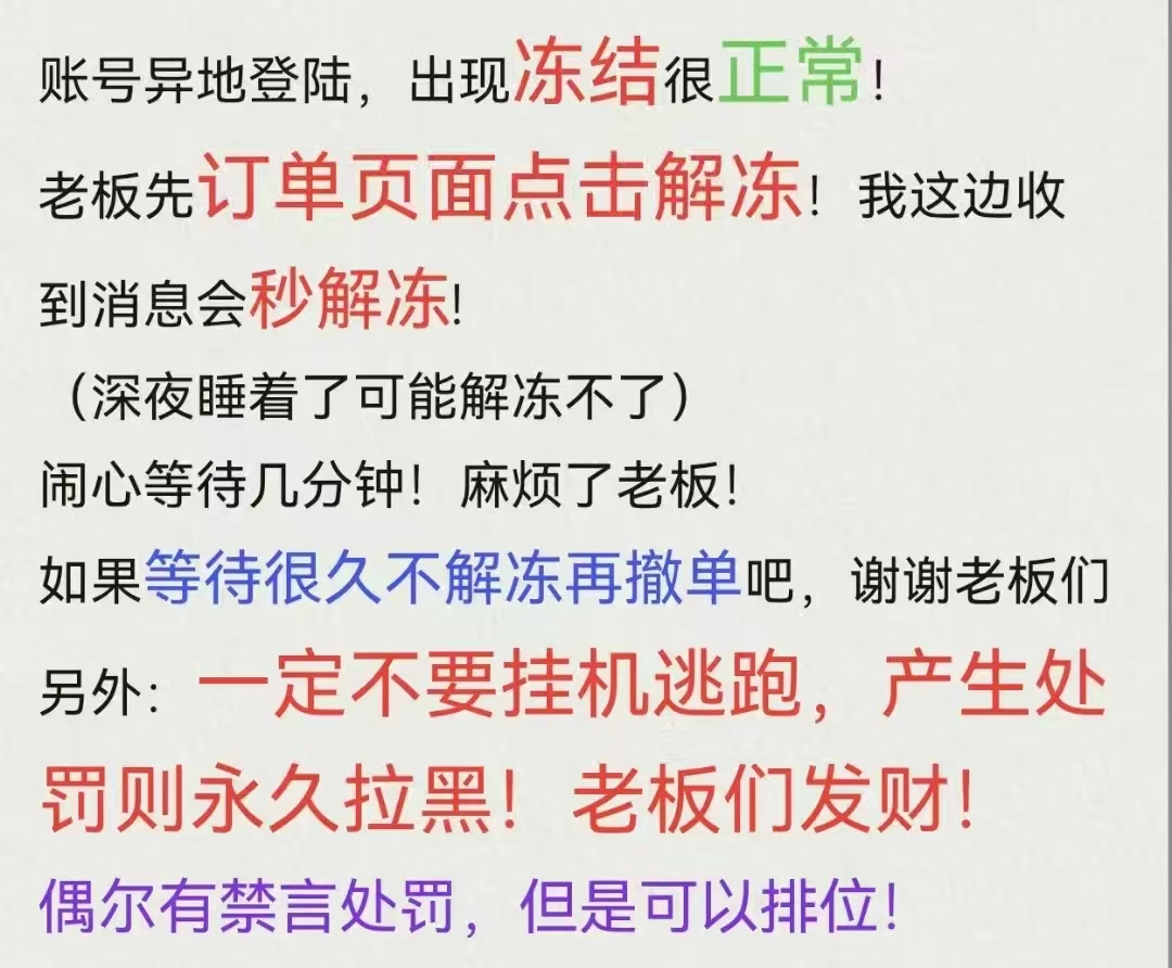 ⚡切勿开挂,禁止辱骂压力队友,导致禁言的拉黑 ⚡非账号问题投诉撤单一律拉黑 ⚡喜欢的朋友可以+收藏方便下次租用;