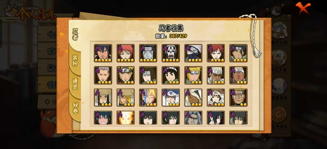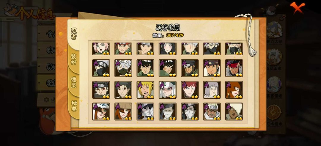 超佩恩·天道,木叶创立宇智波斑,纲手,猿飞日斩,大蛇丸,须佐能乎宇智波鼬,天道佩恩,漩涡鸣人·宇智波佐助,暴怒·第六尾漩涡鸣人,九喇嘛连结漩涡鸣人,永恒万花筒宇智波佐助,忍界大战春野樱,须佐能乎旗木卡卡西,自来也(普通),仙人模式自来也,舞之豪杰自来也,传说中的三忍自来也,死门迈特凯,波风水门,秽土转生波风水门,九喇嘛连结波风水门,秽土转生猿飞日斩,千手扉间,秽土转生千手扉间,千手柱间,木叶创立千手柱间,秽土转生千手柱间,宇智波斑,秽土转生宇智波斑,秽土转生·解宇智波斑,秽土转生宇智波鼬,须佐能乎宇智波止水,神秘面具男,白面具宇智波斑,五影会谈宇智波斑,忍界大战宇智波带土,红夜面具男,十尾人柱力宇智波带土,四代目风影罗砂,秽土转生三代目风影,初代目风影烈斗,二代目水影鬼灯幻月,四代目雷影艾,忍界大战艾,三代目雷影艾,秽土转生金角·银角,三代目土影大野木,二代目土影无,秽土转生半藏,忍界大战大野木,秽土转生长门,仙人模式药师兜,最终章大筒木舍人,大筒木桃式,大筒木金式