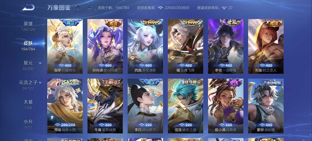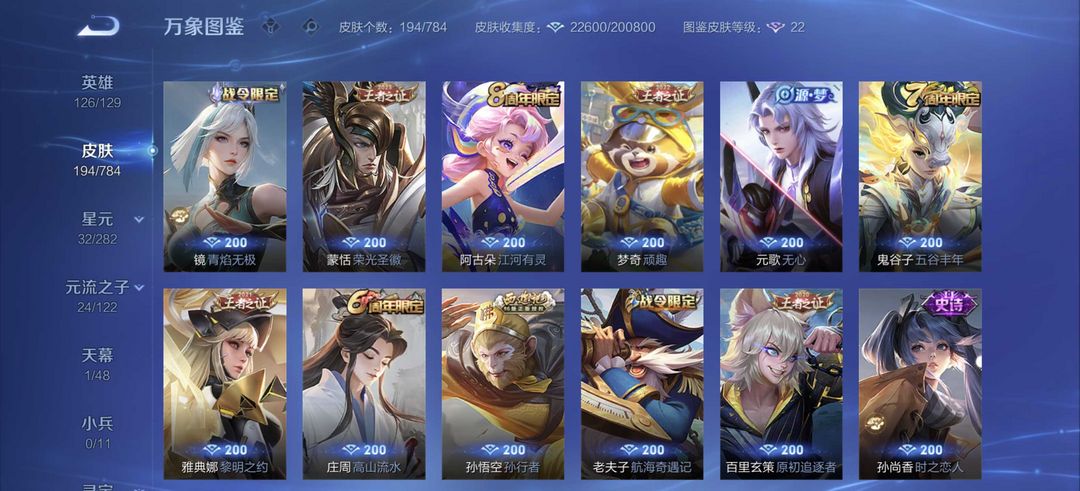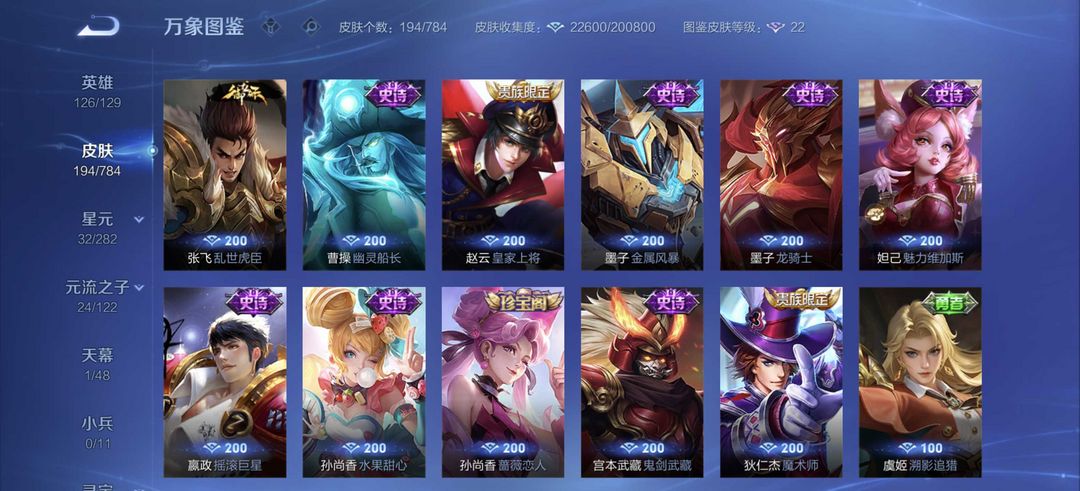 v10、537皮6水4无双、安琪拉-颠倒童话·魔镜、朵莉亚-神骥、遇见神鼓、齐天大圣、白虎志、韩信荣耀典藏、73传说、时之魔女、瑶无双、青丘、九尾、神器明辉仪