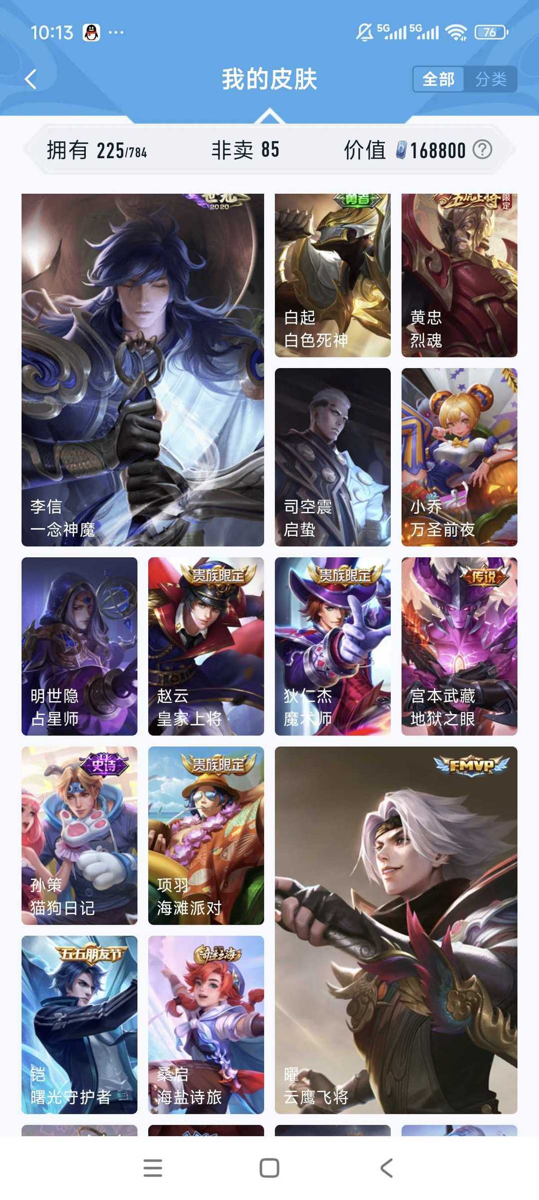 【非云直上】537满皮满典藏12星元◎鲁班新皮◎虞姬星元◎天使星元◎白金战神◎妲己绝版星元
