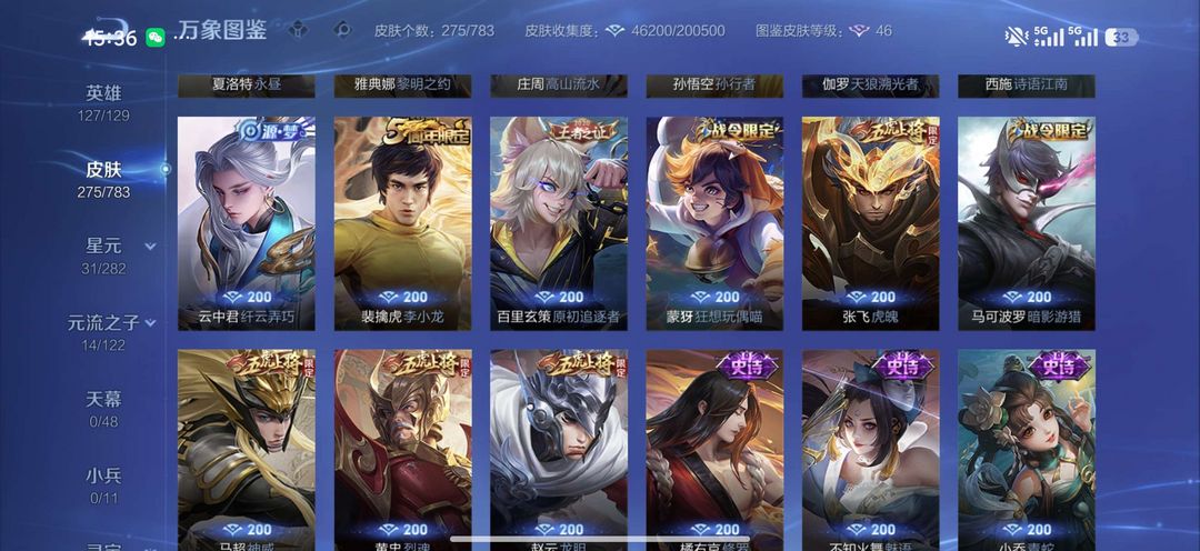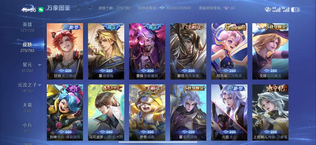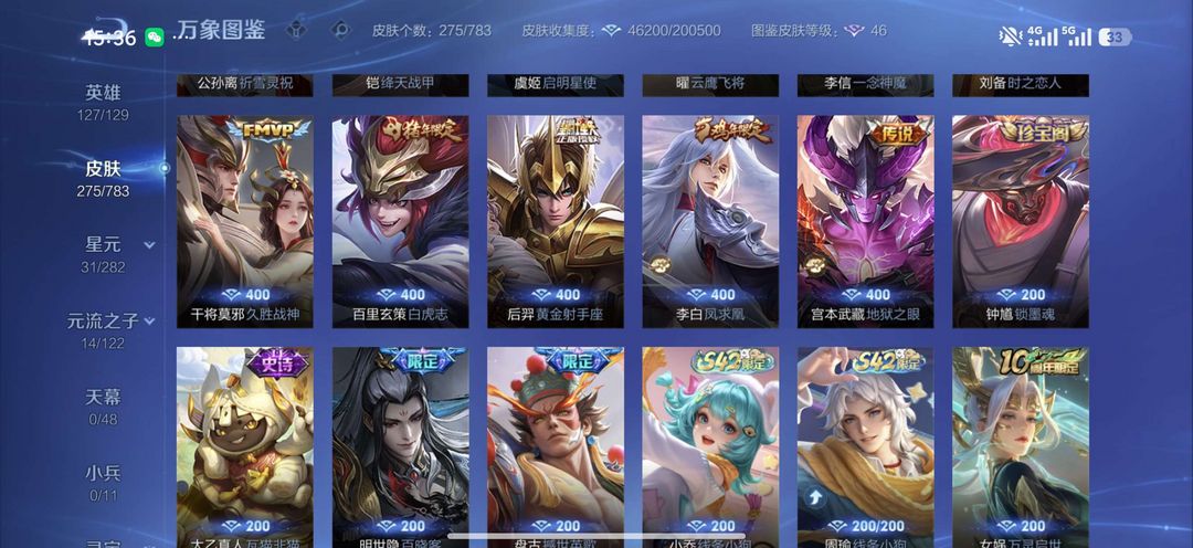 【非云直上】537满皮满典藏12星元◎鲁班新皮◎虞姬星元◎天使星元◎白金战神◎妲己绝版星元