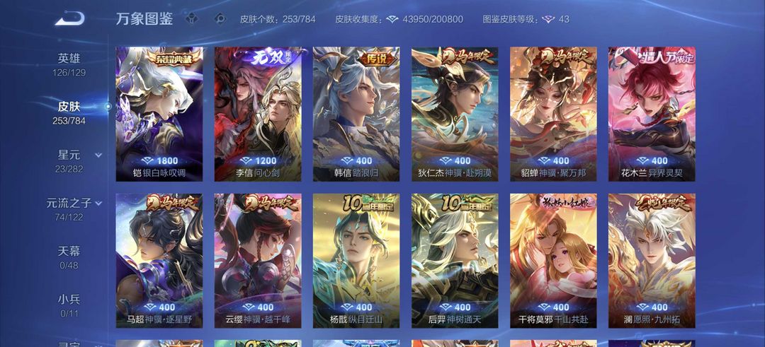 V11✨780皮肤✨马年全皮✨颠倒童话✨千魇归渊✨无相✨神罪✨山海经天机白泽✨全套死神联动✨全套穆夏✨馥梦繁花✨美神临世✨全荣耀水晶✨全无双
