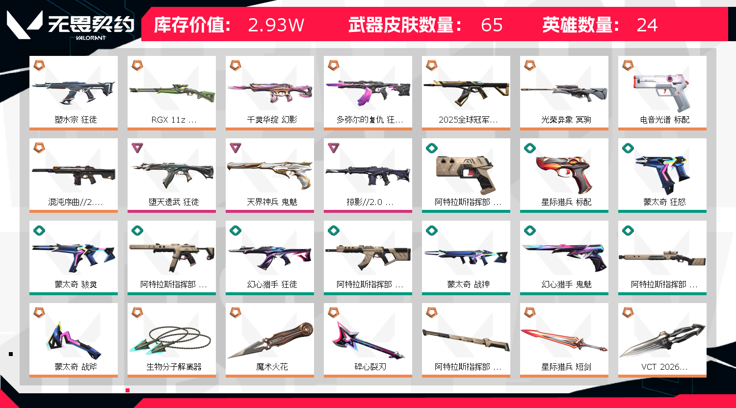 首页 > 租号大厅 > 无畏契约-wegame > wegame/wegame > 秒解冻💕25冠军狂徒💕魔术火花 26VCT篆刀💕塑水狂徒 多弥尔狂徒💕天界鬼魅💕青铜黑铁