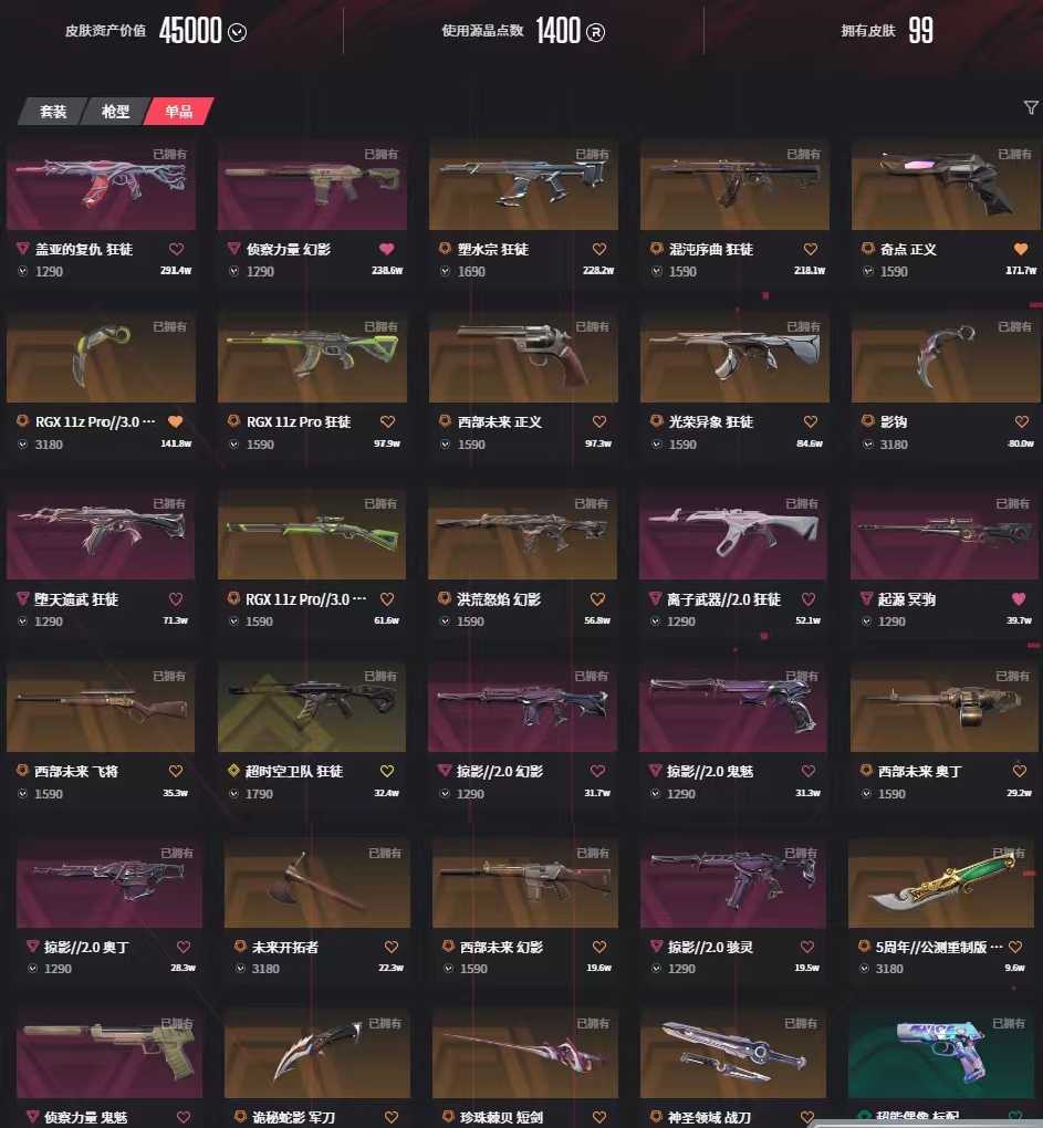 • 武器皮肤数量: 99
