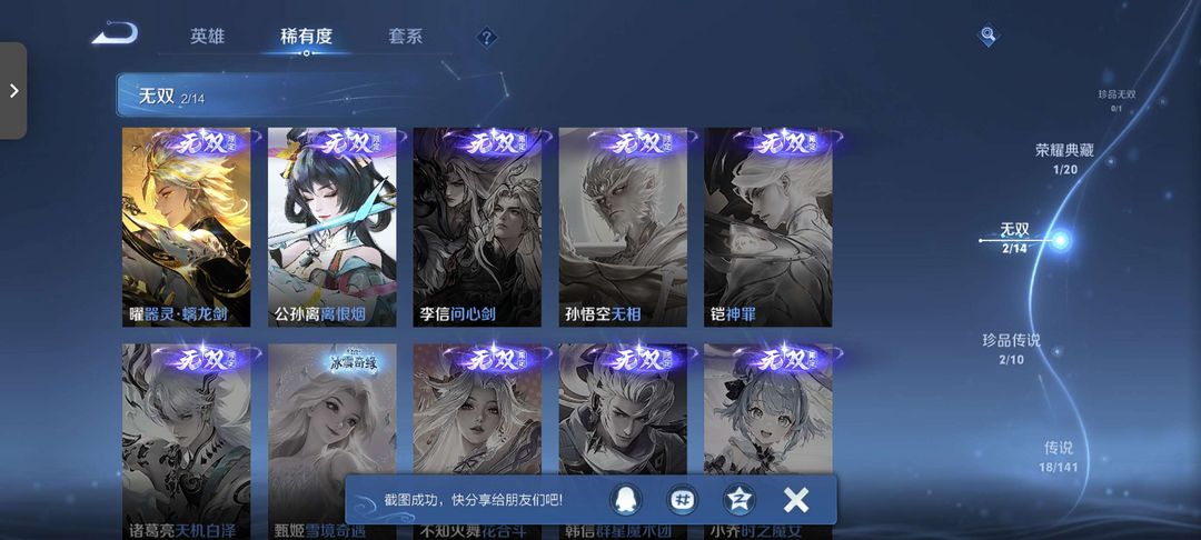 【非沄直接上号】极品V10★三历史国标★430皮★六典藏★诸葛亮新典藏★虎年五限定★鸣剑戈影★活力突击️★多限定