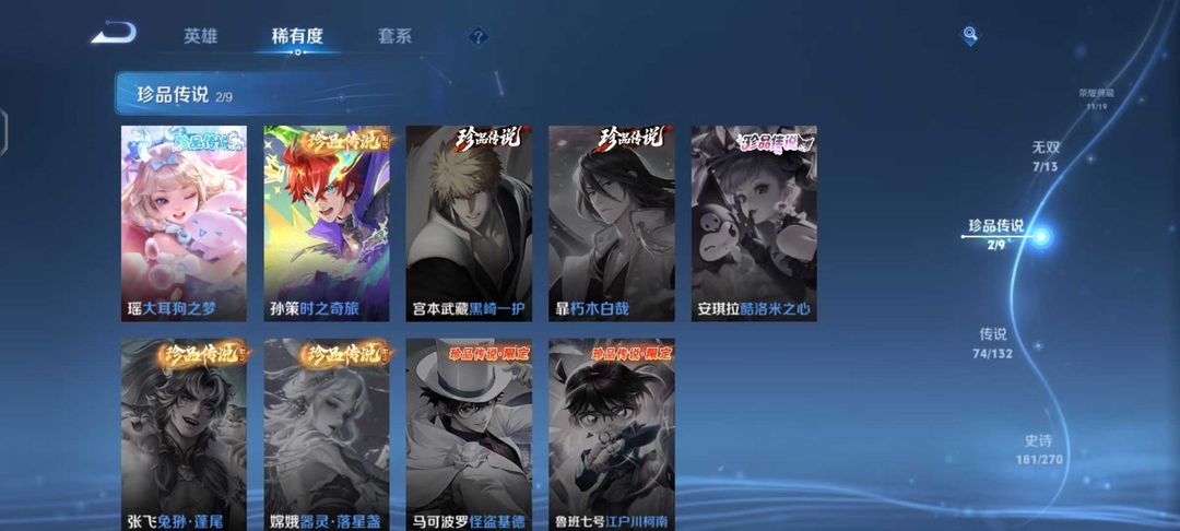 567皮11典藏✨7无双2珍品传说74传说✨孙悟空无相✨器灵·螭龙剑✨愿照·九州拓✨白银永叹调