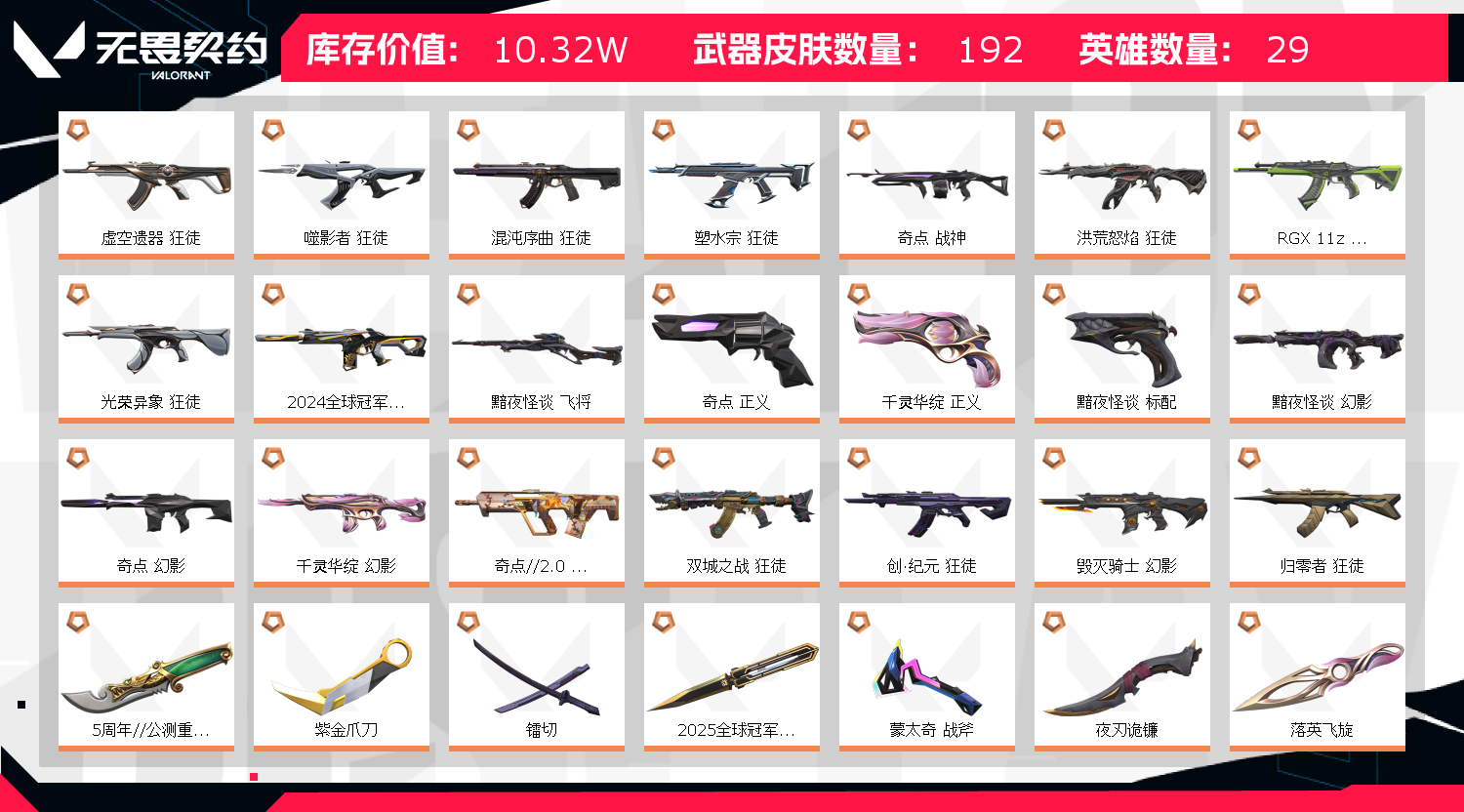 首页 > 租号大厅 > 无畏契约-wegame > wegame/wegame > 【10万库存/2070R】VCT2026+25/24冠军套装22幻影+喵喵AK仙女棒镭切显卡爪青龙刃