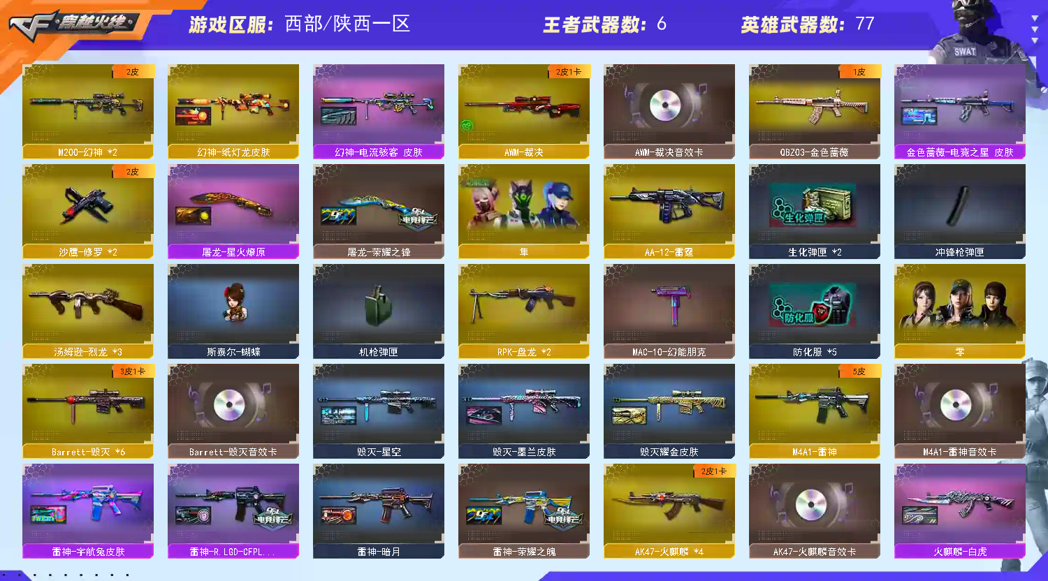 • 游戏区服:穿越火线 / 西部 / 陕西一区