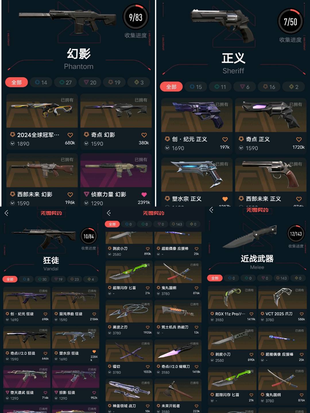 开挂必起诉;西部未来 奥丁,黑波之刃,剥皮小刀,镭切,VCT 2025 爪刀,盖亚的复仇 狂徒,掠影 狂徒,