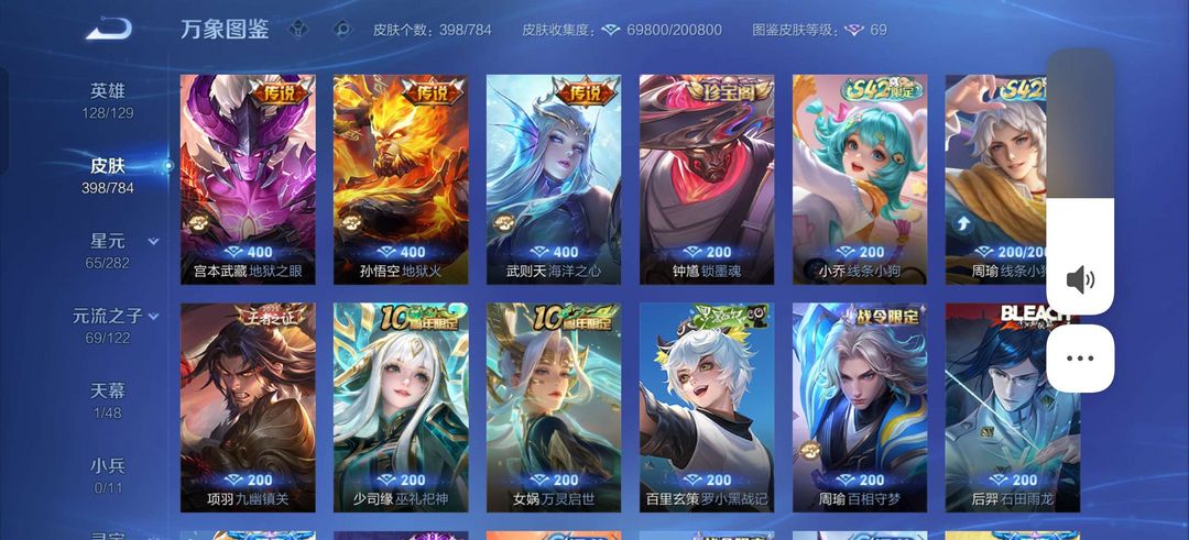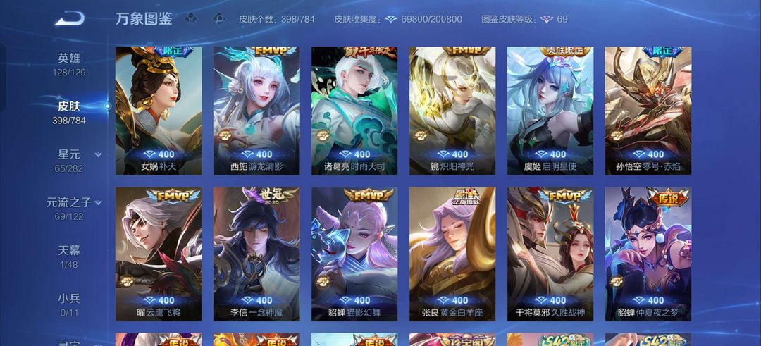 v10、537皮6水4无双、安琪拉-颠倒童话·魔镜、朵莉亚-神骥、遇见神鼓、齐天大圣、白虎志、韩信荣耀典藏、73传说、时之魔女、瑶无双、青丘、九尾、神器明辉仪