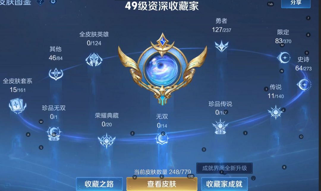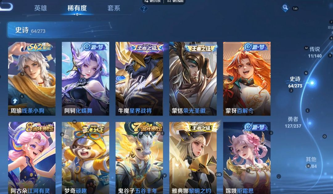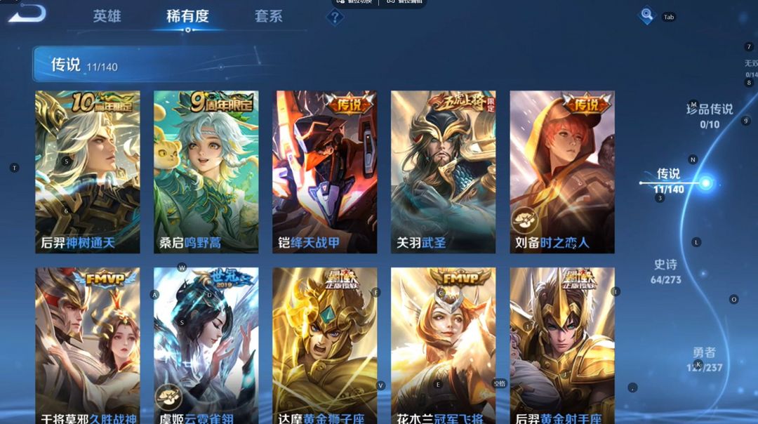 【非云直上】V10★皮肤榜一★539皮满典藏★鲁班时之奇旅会员★虞姬黛羽霜翎星元★吕布白金战神★全能大师★多金标★个性按键