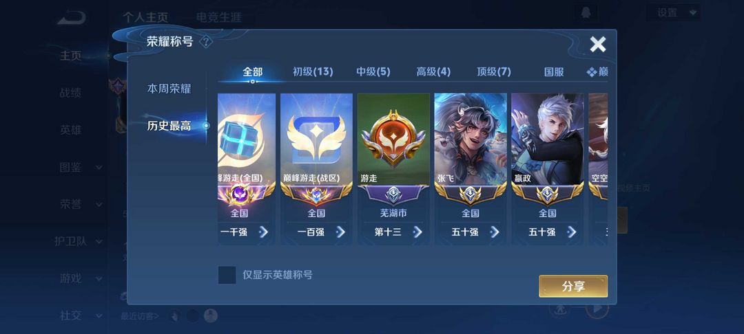 立即租号首页 > 租号大厅 > 王者荣耀 > 标题写明区服/QQ > 7省标空空儿太乙盾山苏烈张飞元辅少司缘⭐巅峰⭐可排位/禁巅峰/禁挂机