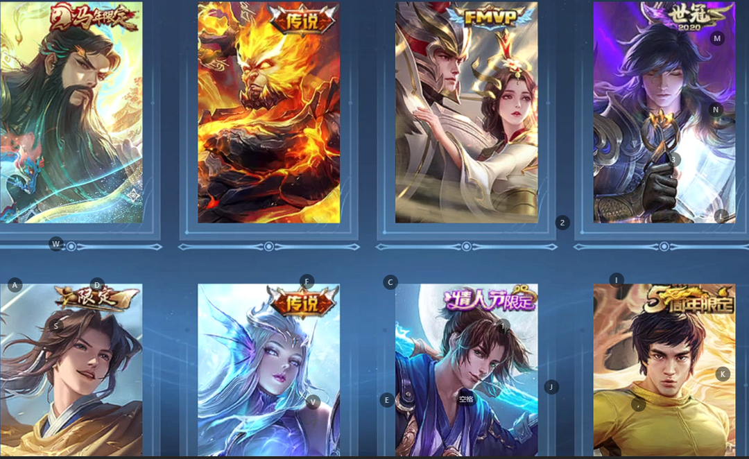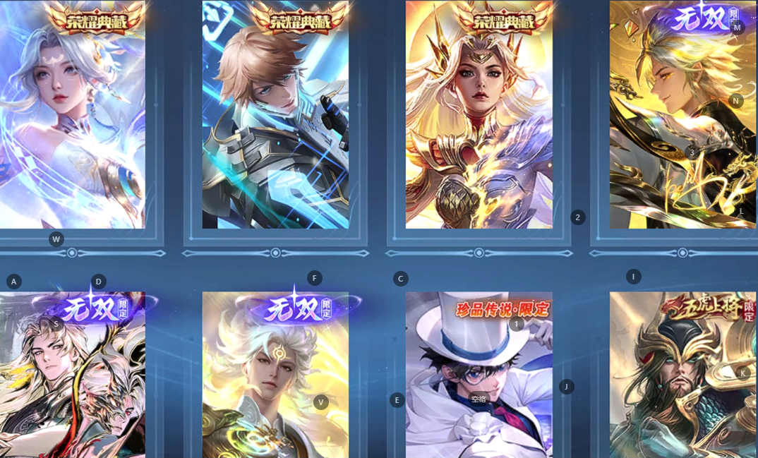 v10、537皮6水4无双、安琪拉-颠倒童话·魔镜、朵莉亚-神骥、遇见神鼓、齐天大圣、白虎志、韩信荣耀典藏、73传说、时之魔女、瑶无双、青丘、九尾、神器明辉仪