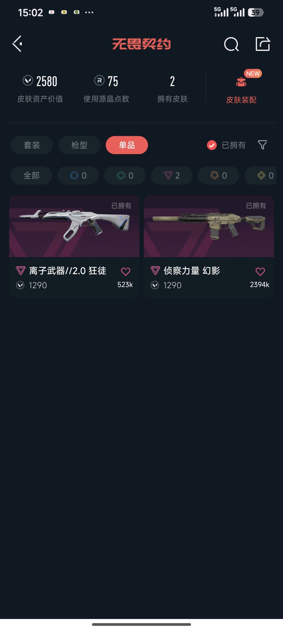 • 皮肤资产价值: 2580