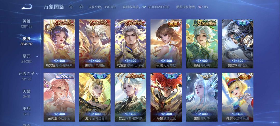 【非云直上】537满皮满典藏12星元◎鲁班新皮◎虞姬星元◎天使星元◎白金战神◎妲己绝版星元