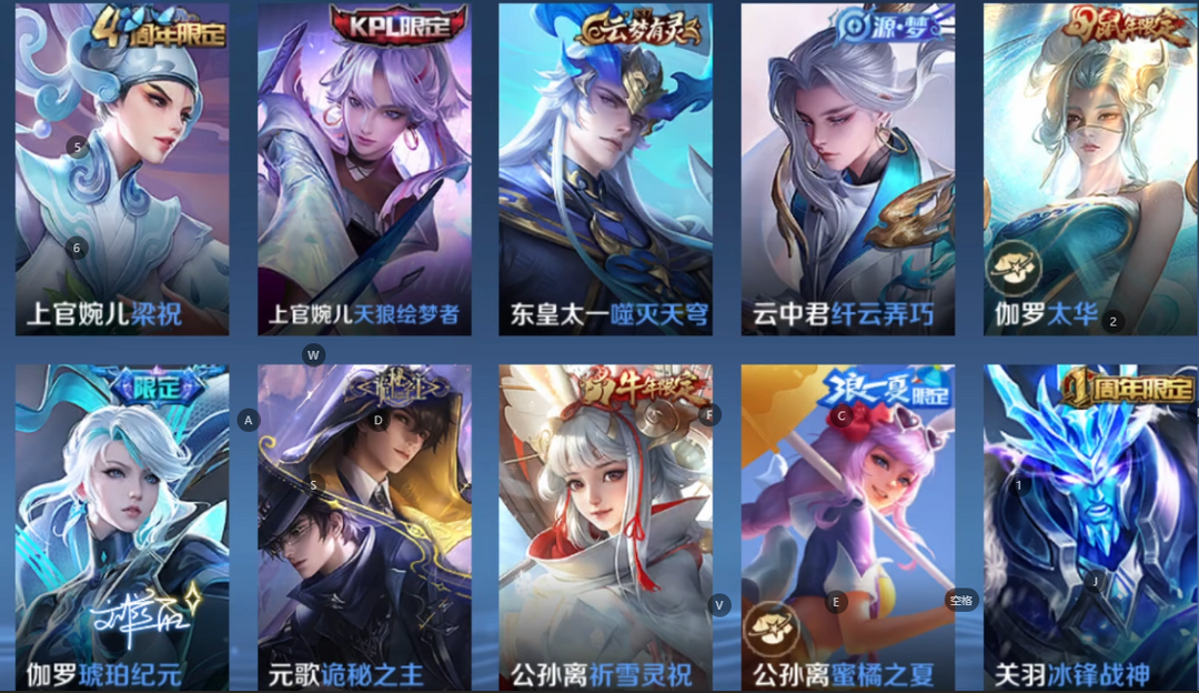 【天花板V10】535满皮满典藏/大乔时之奇旅新皮/虞姬星元/白金战甲/个性按键★多星元部件