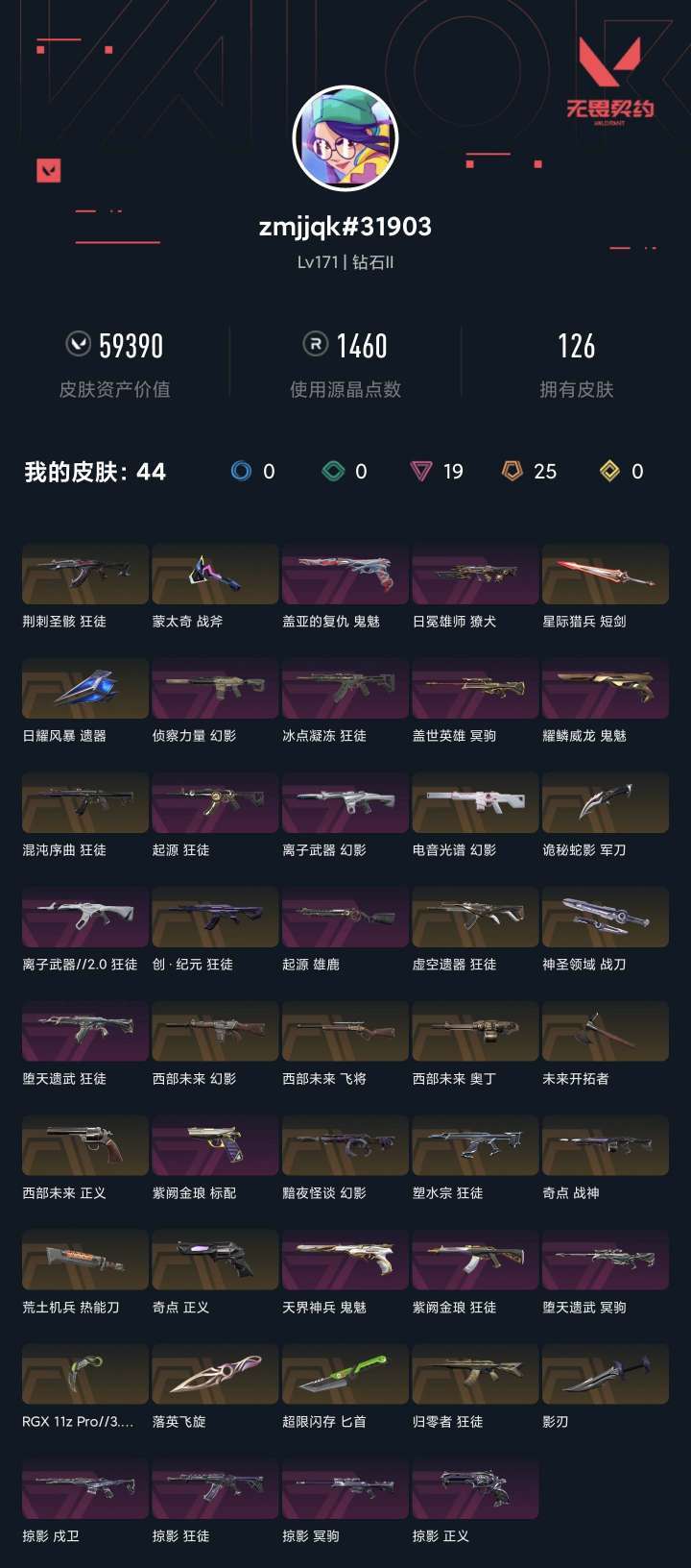 首页 > 租号大厅 > 无畏契约-wegame > wegame/wegame > (可;排位)价格低狂徒有12把特效皮包括玫瑰 弃王 掠夺等幻影5把特效皮其余常用枪型均配有特效皮