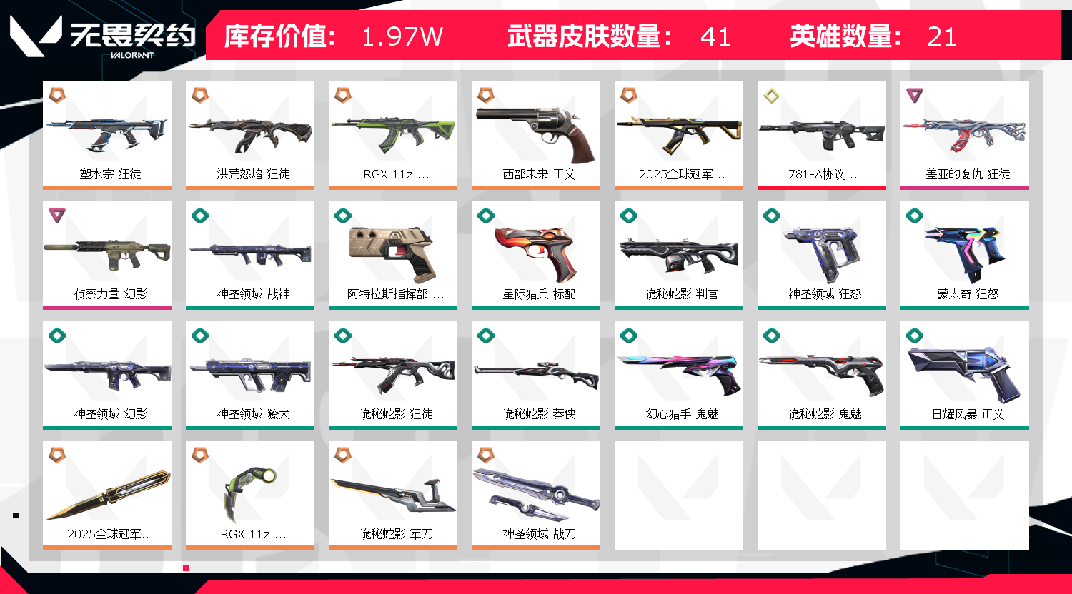 • 皮肤资产价值: 19680