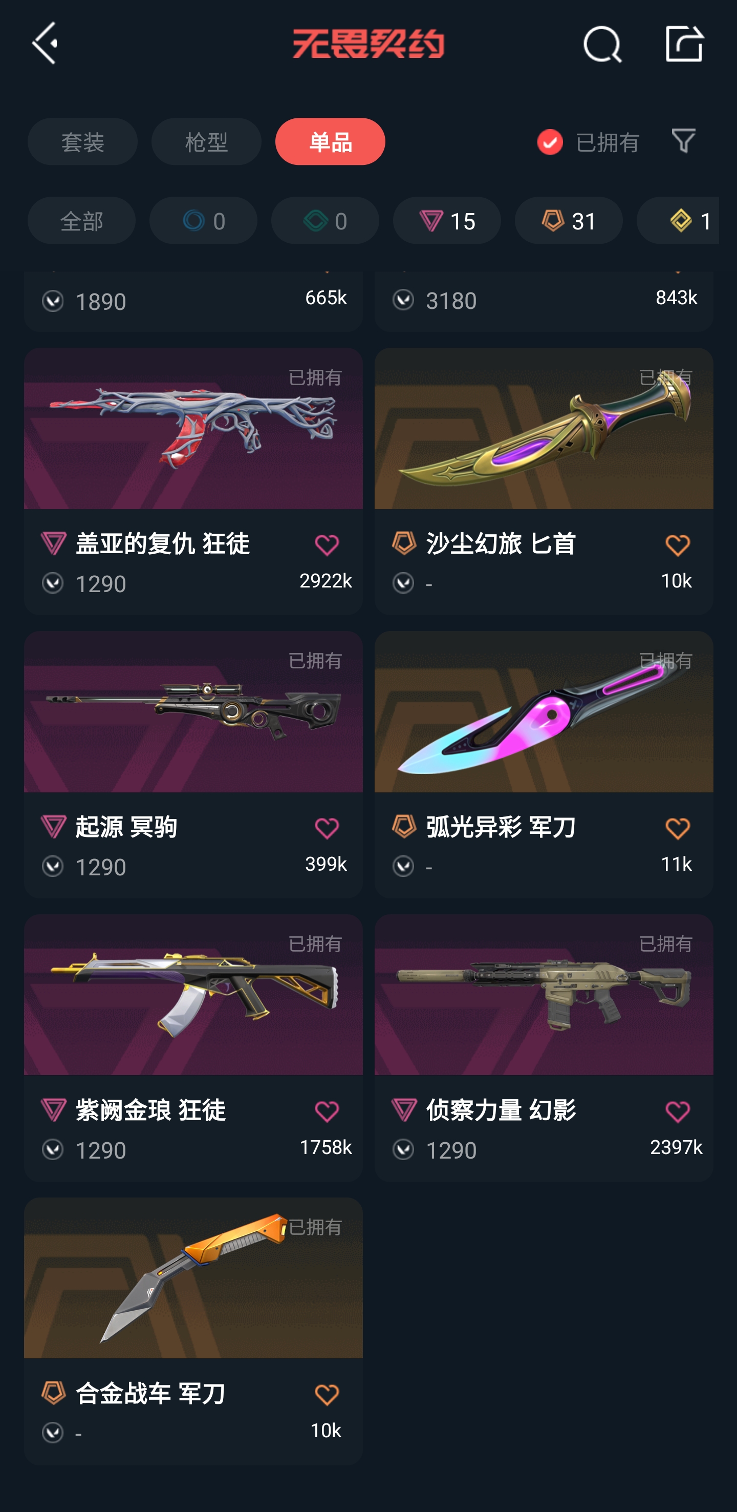 • 传奇数量: 31