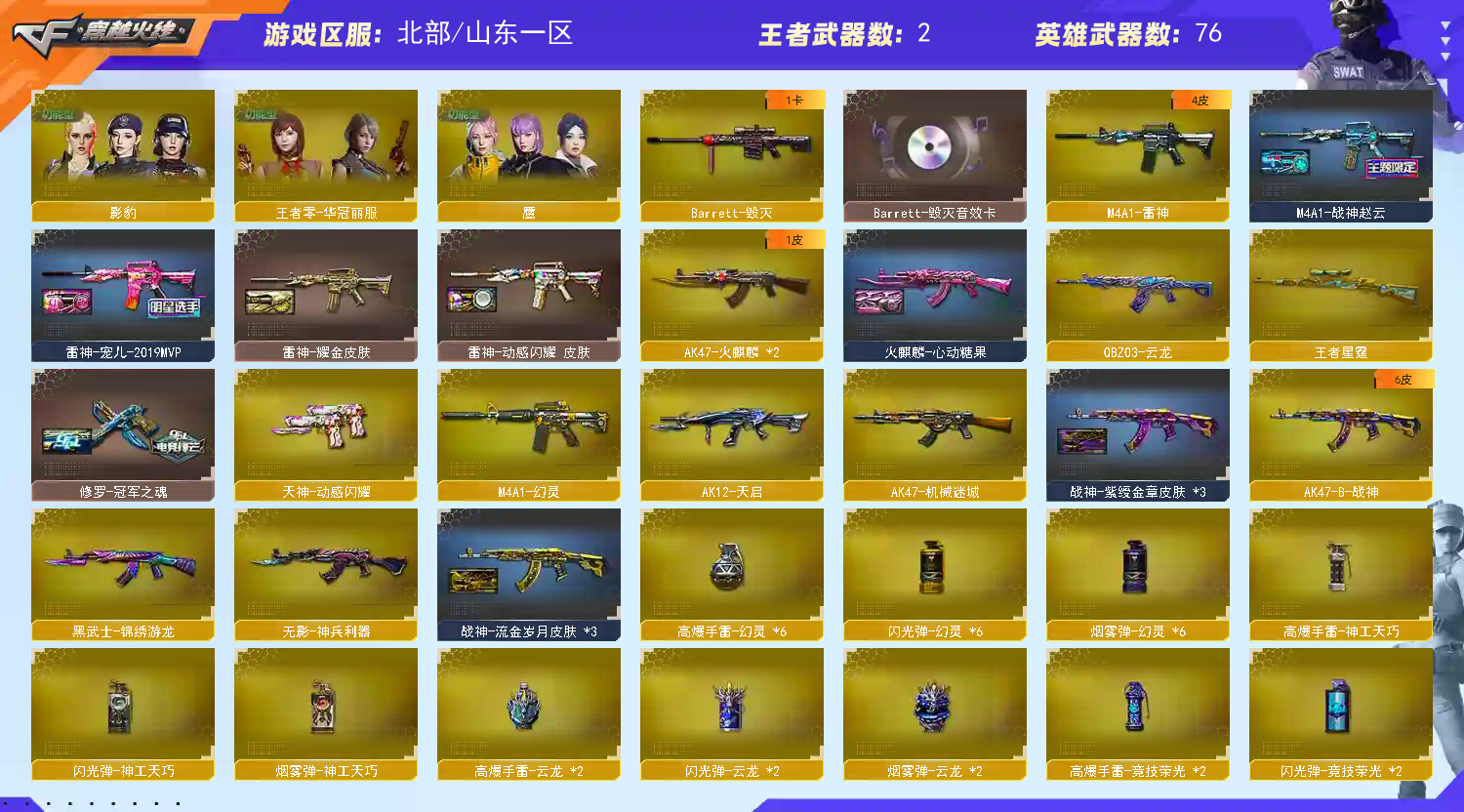 • 游戏区服:穿越火线 / 北部 / 山东一区