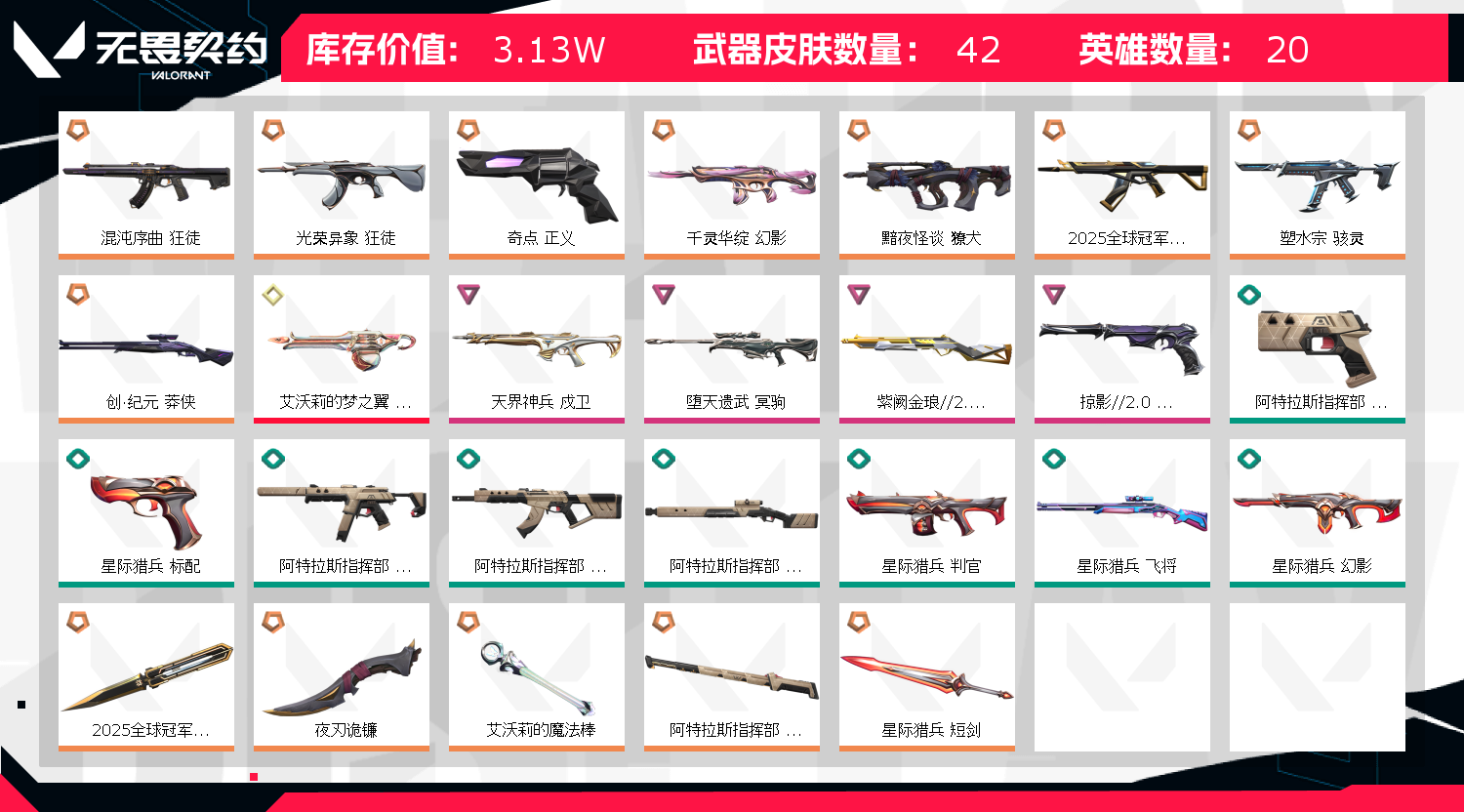 首页 > 租号大厅 > 无畏契约-wegame > wegame/wegame > 允许 英雄20 武器皮肤数量41