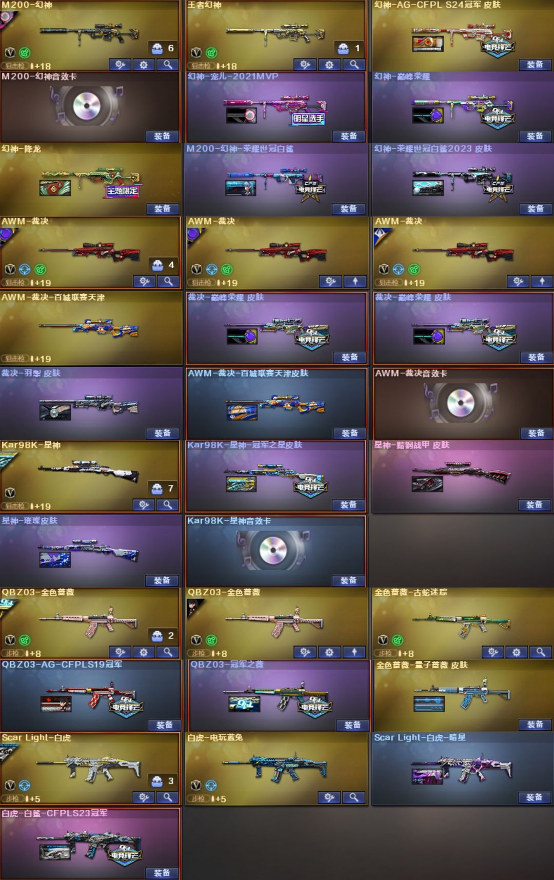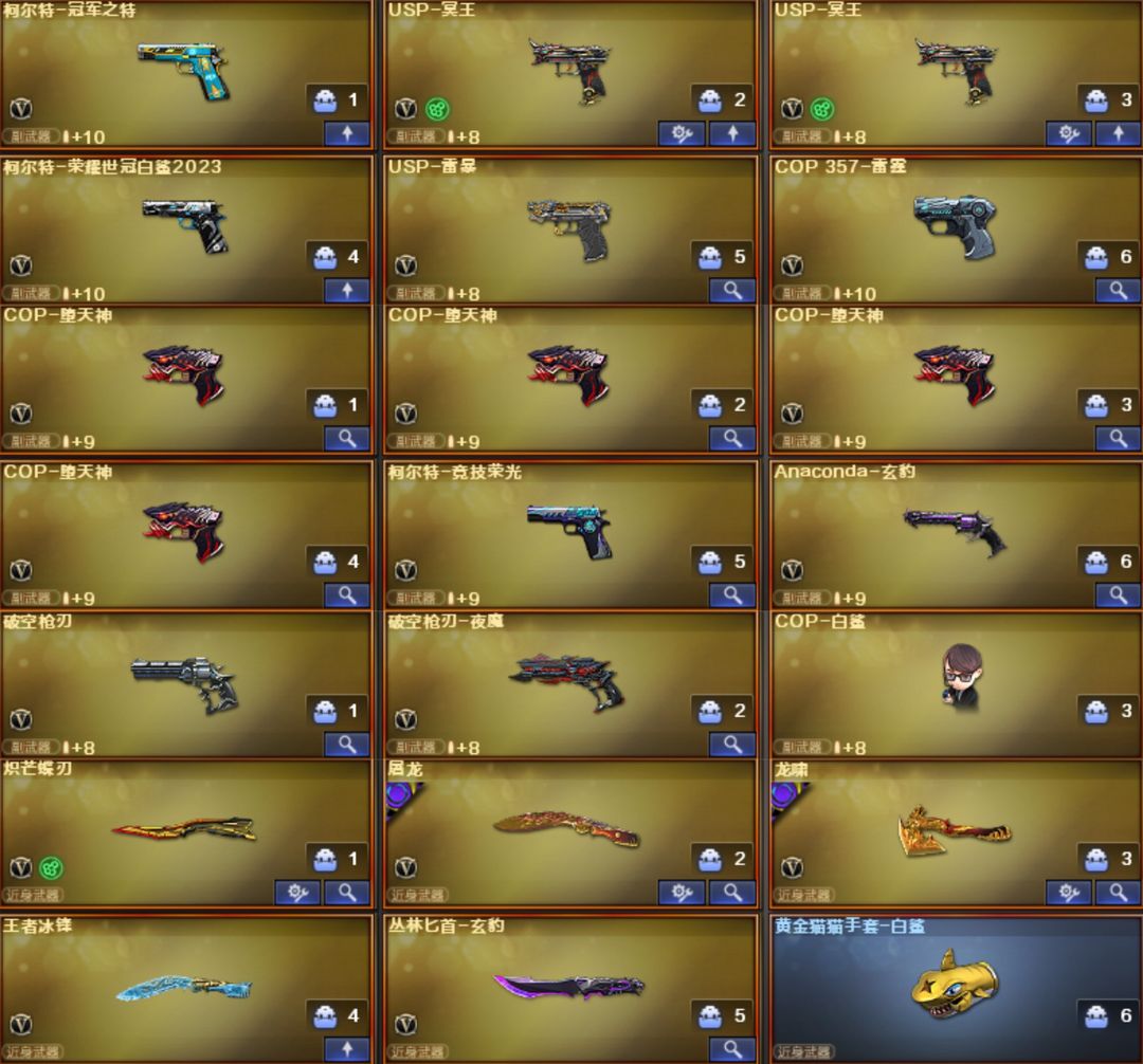 5套幻兽星骇灵眸幻影天戎银翼♥幻神音效卡宠儿白鲨AG6皮♥裁决音效卡4皮♥白虎白鲨暗星QBZ冠薇3皮