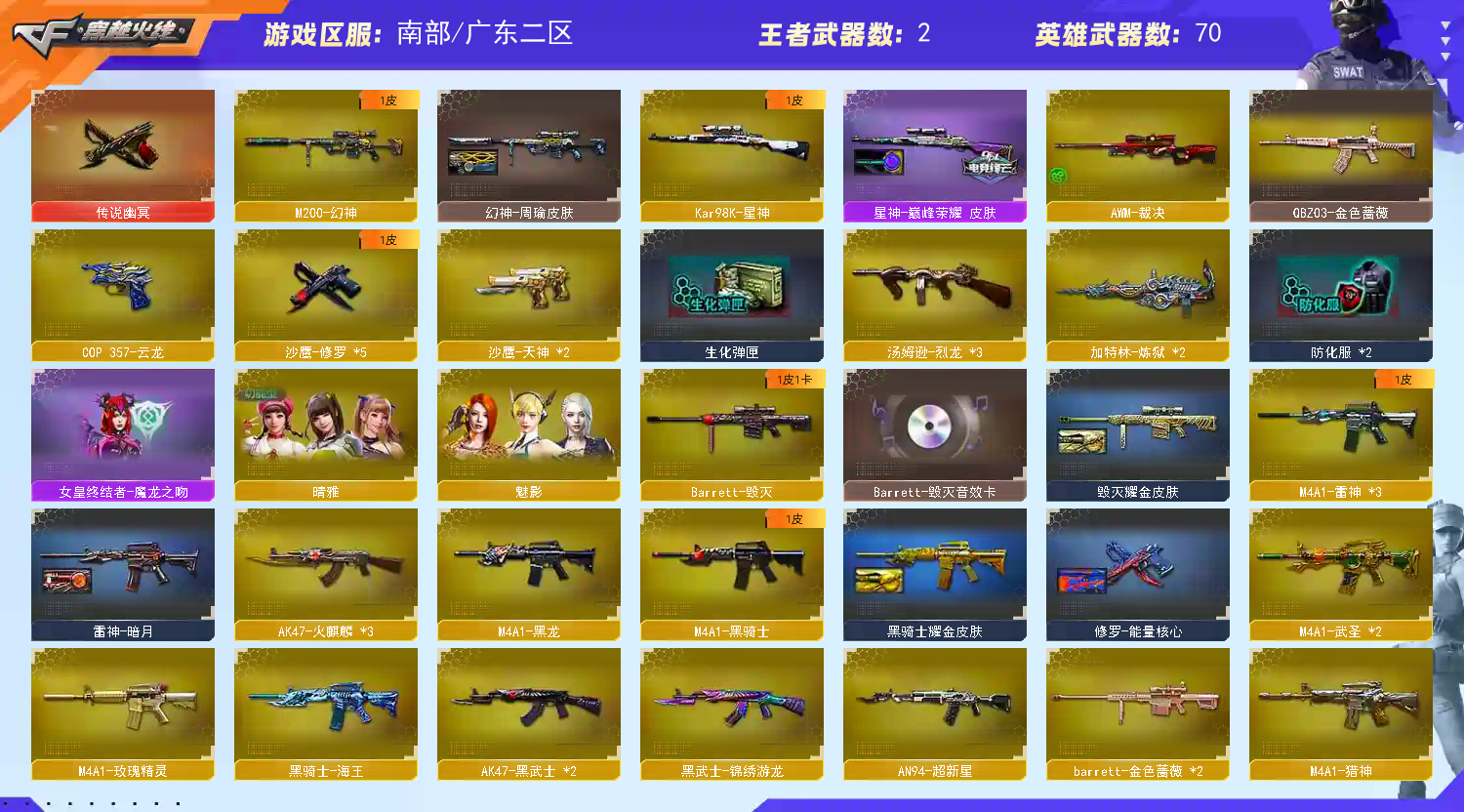 66v✨传说幽冥✨幻神✨枪王之王名片✨王者怒/魄✨云龙套✨黑骑士耀金✨毁灭耀金✨雷神斗鱼✨✨枪王之王名片✨幻神✨王者怒/魄✨云龙套✨黑骑士耀金✨毁灭耀金✨雷神斗鱼✨爆破全装可排位✨;传说幽冥,晴雅,QBZ03-金色蔷薇,M200-幻神,Kar98K-星神,