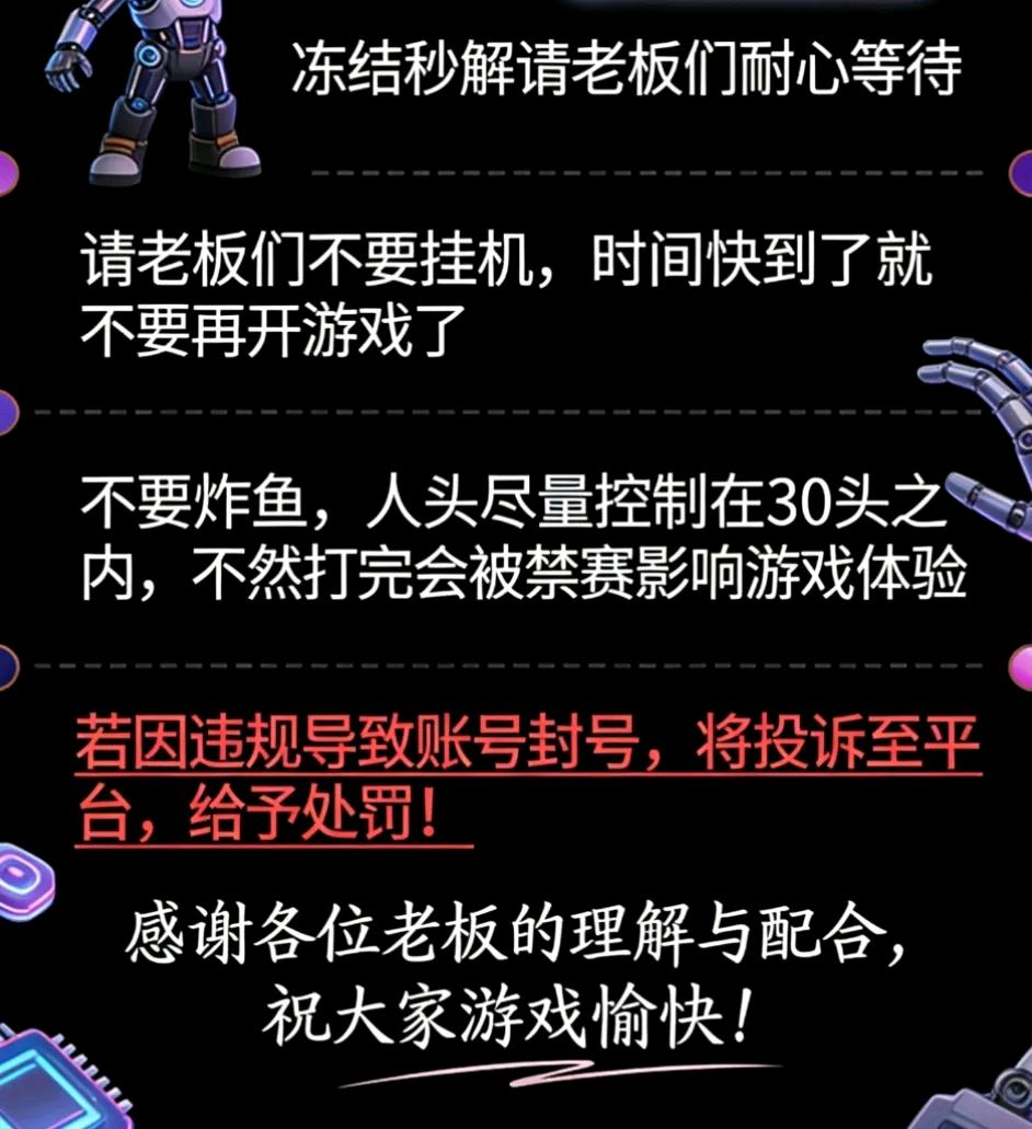 拜托各位兄弟们请勿不当言论、挂机、开挂、炸鱼等影响游戏行为,控制人头数量,近期被封号,继续会加重处罚,恳请您少杀一点!谢谢各位兄弟理解,祝各位兄弟老板们发财暴富,身体健康!!😊;西部未来 奥丁,威龙之刃,归零者 獠犬,掠影 狂徒,侦察力量 幻影,堕天遗武 狂徒,混沌序曲 狂徒,