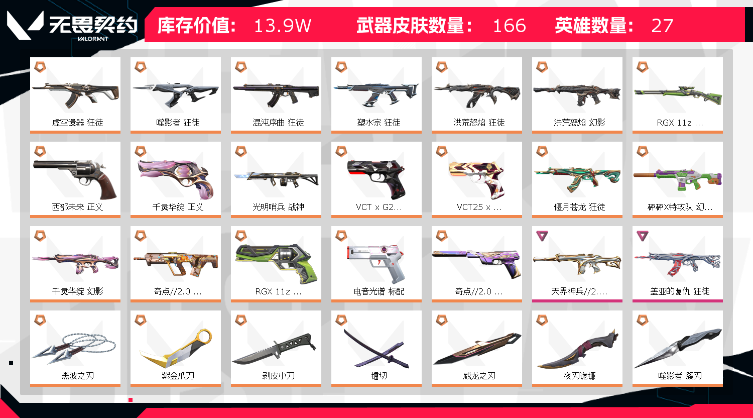 • 武器皮肤数量: 166