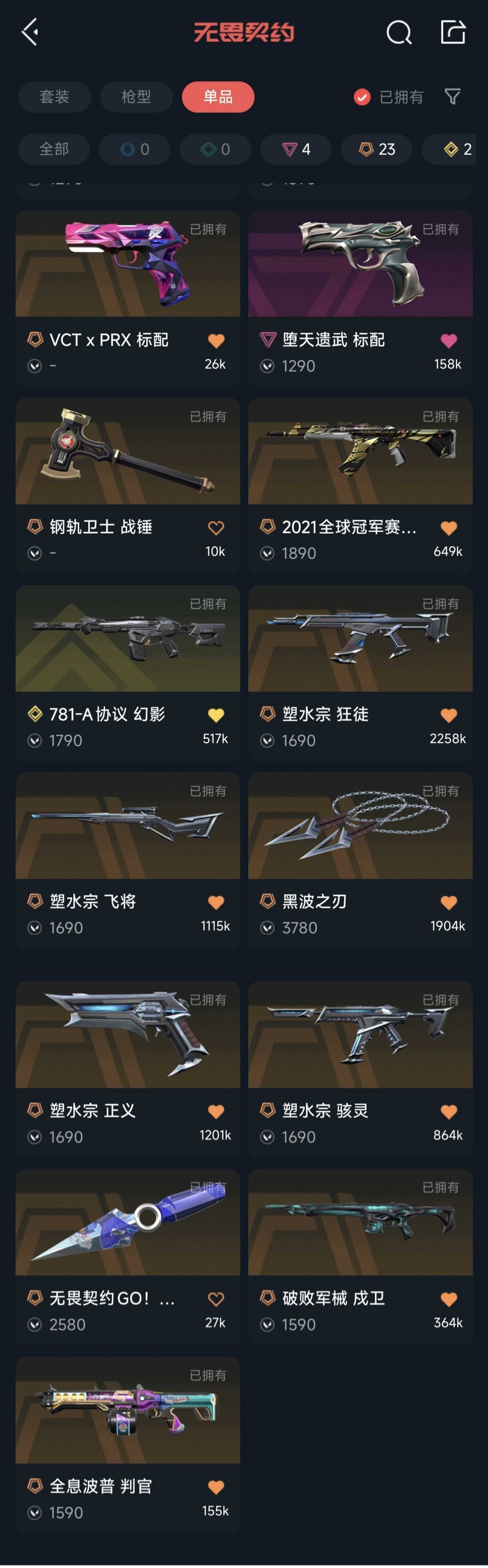 可排位8万库存!21冠军狂徒!千灵2.0全套!塑水宗全套!vct标配黑波之刃!海洋盖亚狂徒协议洪荒幻