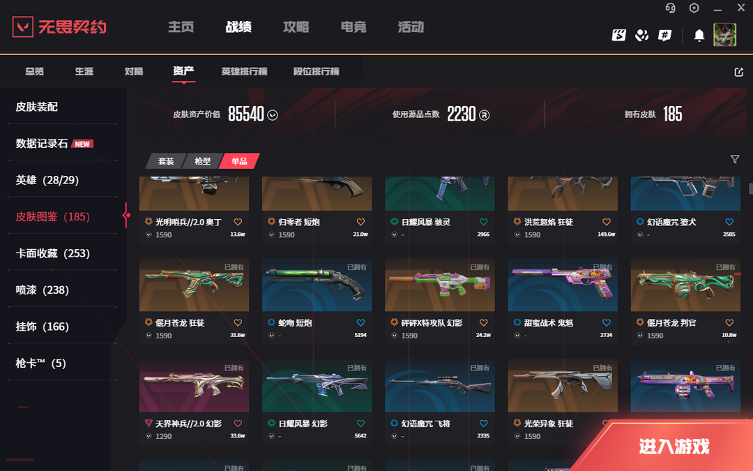 • 武器皮肤数量: 185