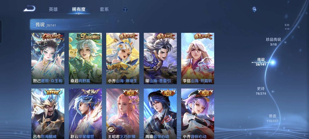 V10、550皮14水、吕布典藏-千魇归渊、云缨-神骥·越千峰、怪盗基德、伽罗星传说红枫、瑶典藏拾光映像、冥王哈迪斯、、龙年限定、齐天大圣