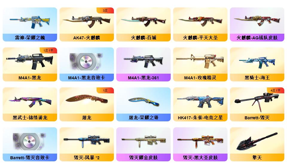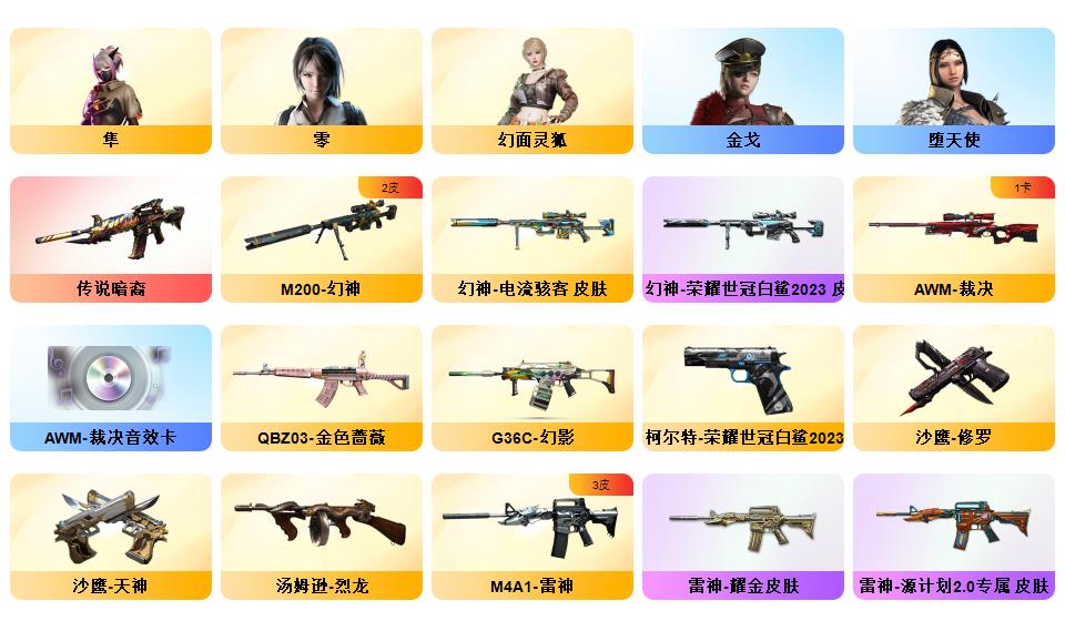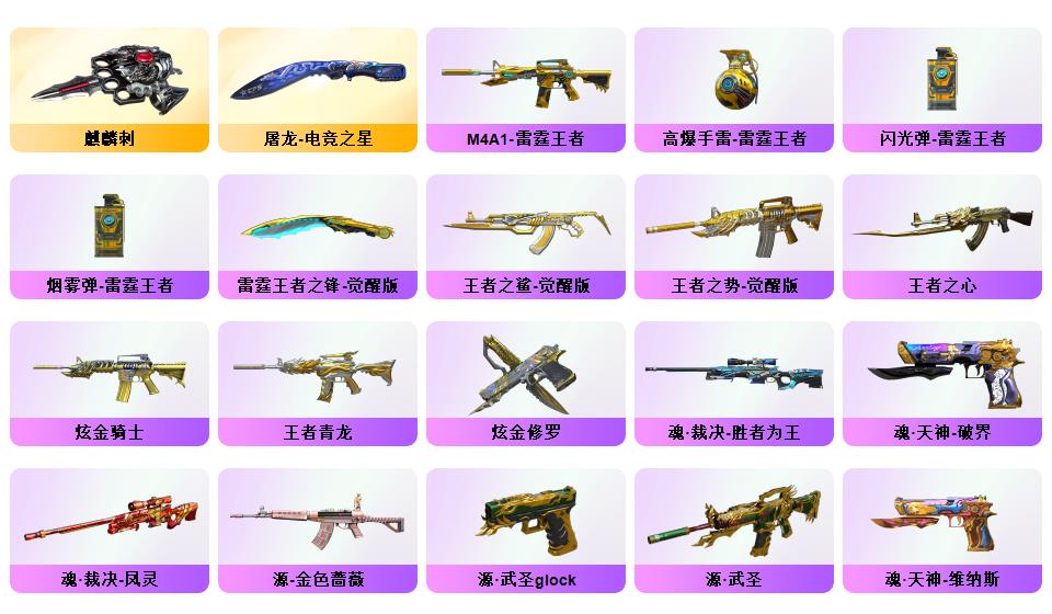 【穿越火线】传说暗裔/幻神电流骇客 /幻神荣耀世冠白鲨2023 /毁灭耀金/毁灭风暴/毁灭黑大圣/天龙传奇70KG/天龙CFSTAR/火麒麟AG战队/火麒麟CFSTAR/火麒麟平天大圣/_零/隼/幻面灵狐/M200-幻神/Barrett-毁灭/AWM-裁决/M4A1-雷神(2)/M4A1-黑龙/M4A1-黑龙音效卡/Barrett-毁灭音效卡/AWM-裁决音效卡