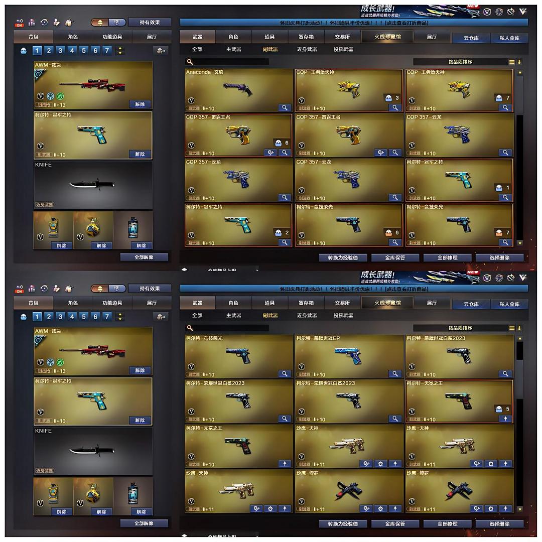 幻神多皮带音效卡:YZK皮肤、KZ皮肤/AG皮肤/欧欧皮肤等//裁决多皮带卡//星神多皮带卡//白虎常旭皮肤带卡等很多卡//11把柯尔特冠军之特EP白鲨等//7把COP英雄//usp//