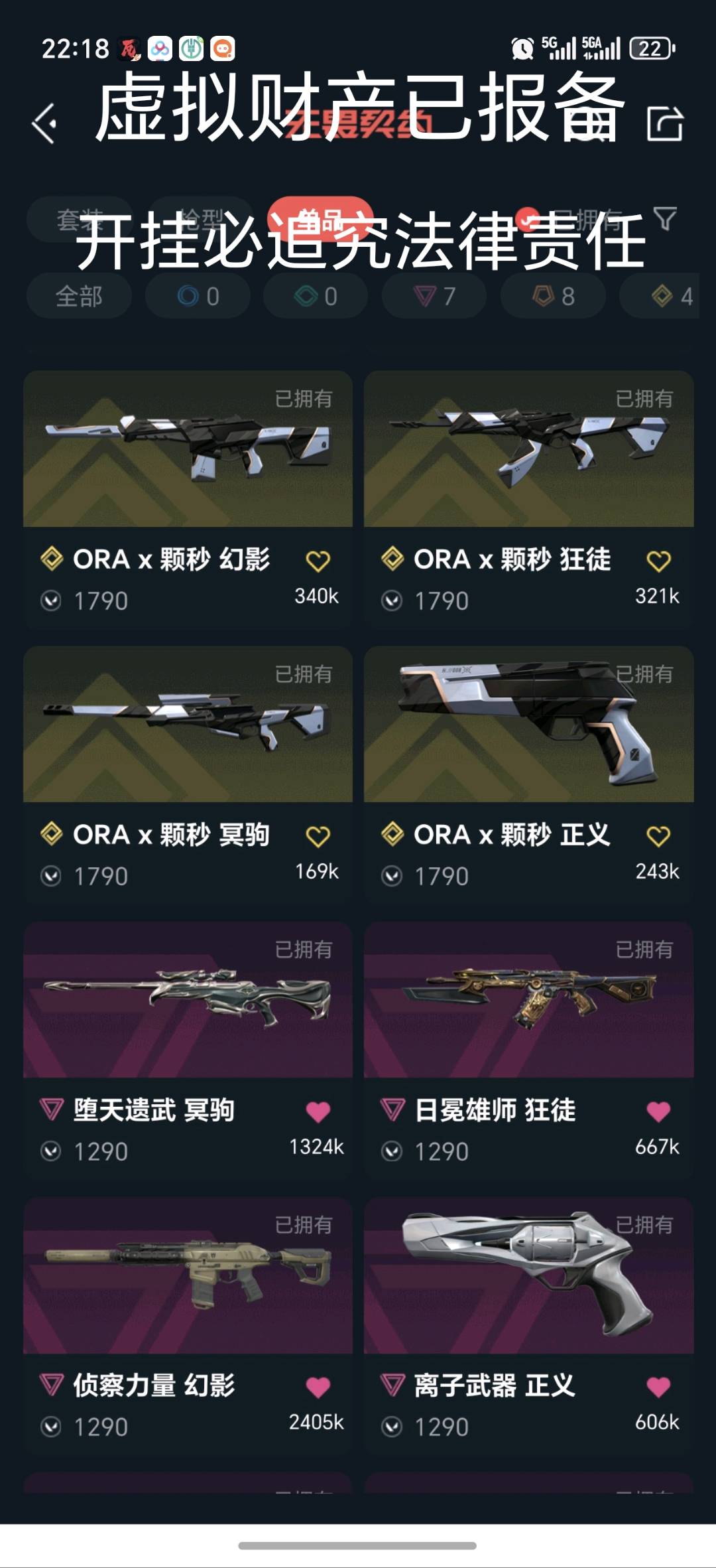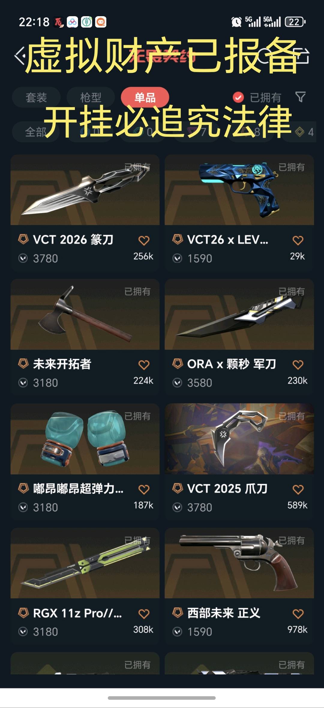 VCT篆刀✨颗秒套✨VCT爪✨滋滋拳✨显卡蝴蝶✨西部✨掠夺✨侦查✨离子✨弃王✨雄狮✨紫金