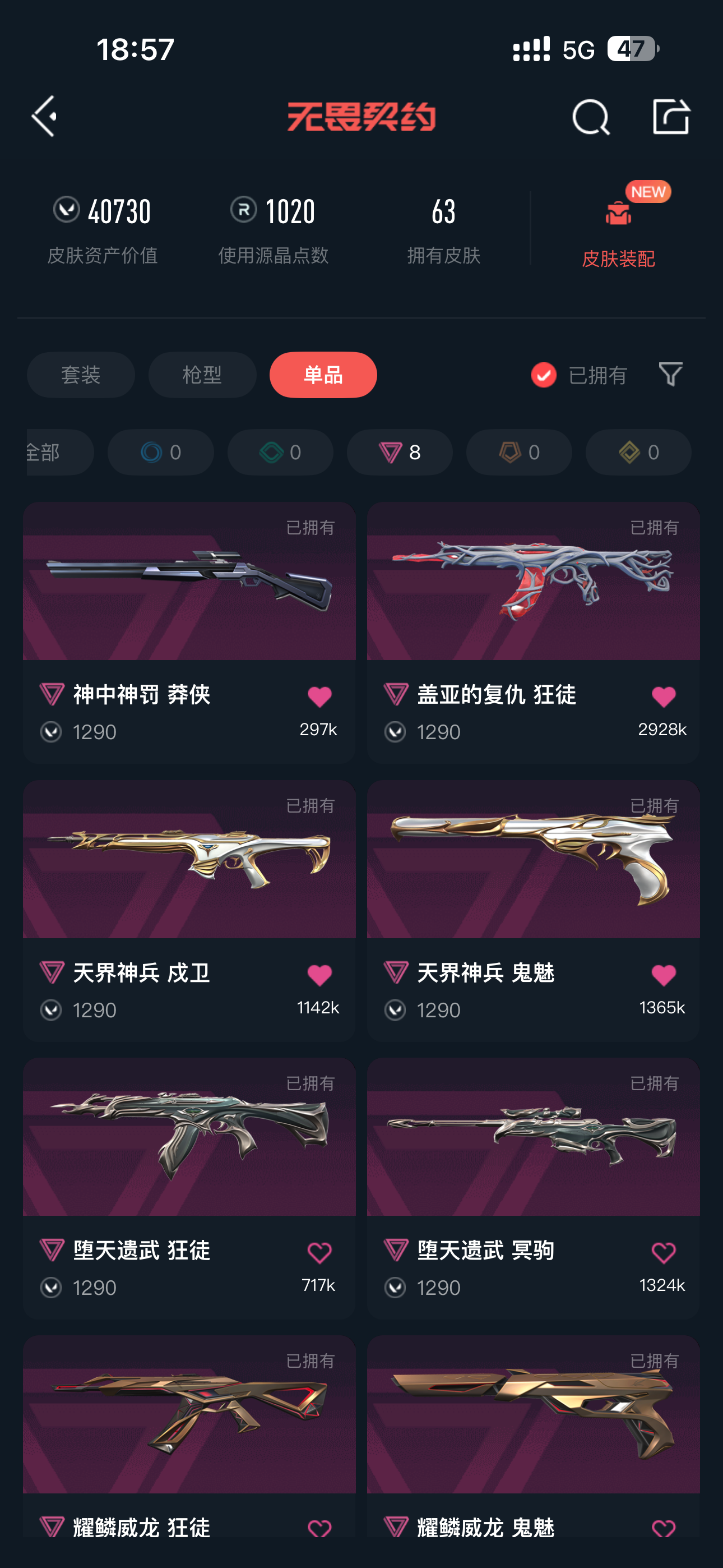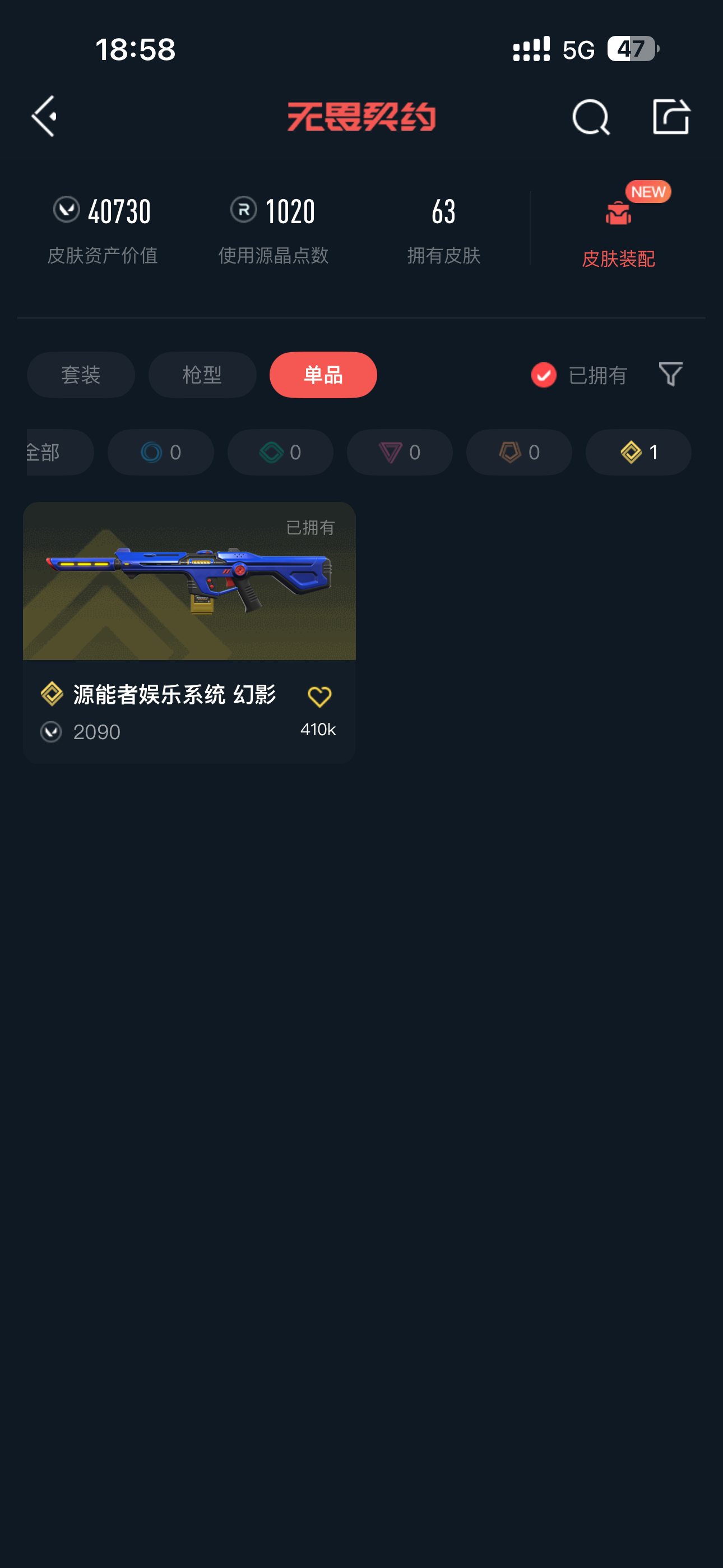 • 皮肤资产价值: 40730