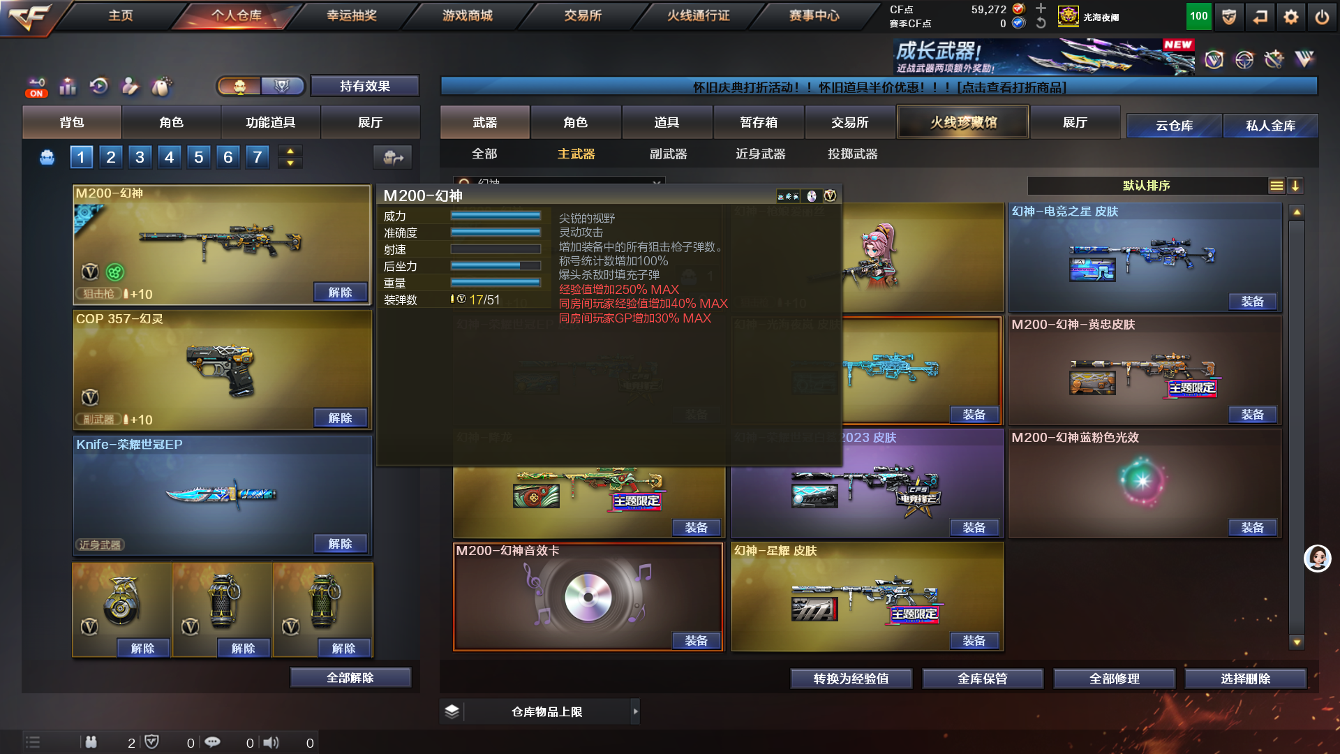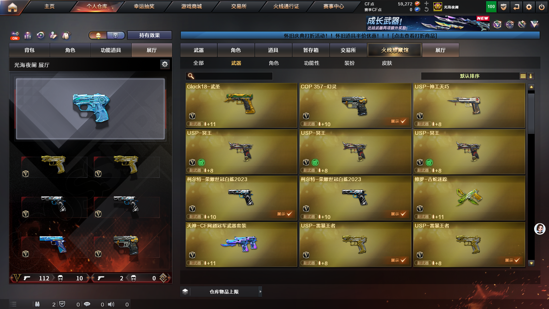 禁止开挂违者必究;USP-雷暴王者,柯尔特-荣耀世冠白鲨2023,Knife-冠军之刃,RPK-盘龙,QBZ03-金色蔷薇,G36C-幻影,M200-幻神,