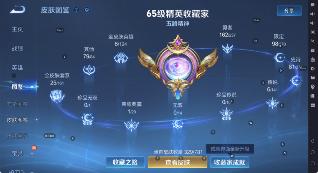 【天花板V10】535满皮满典藏/大乔时之奇旅新皮/虞姬星元/白金战甲/个性按键★多星元部件