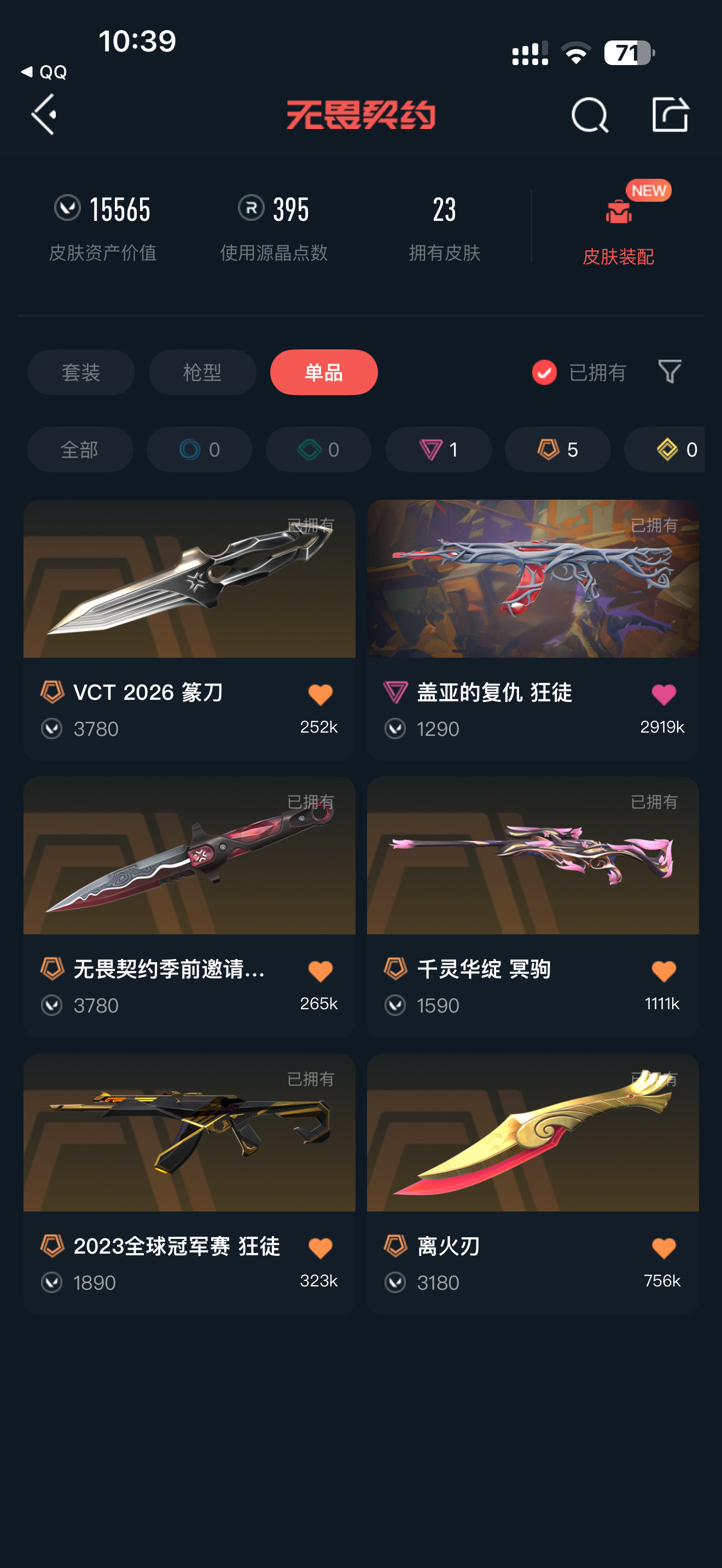 • 皮肤资产价值: 15565