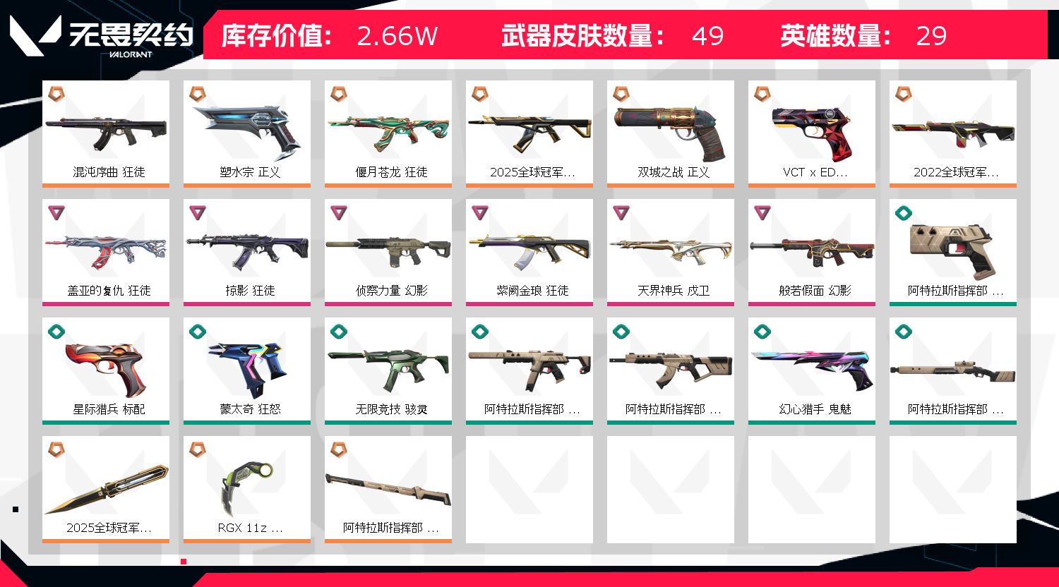 首页 > 租号大厅 > 无畏契约-wegame > wegame/wegame > 25冠军套/22幻影/爆爆正义