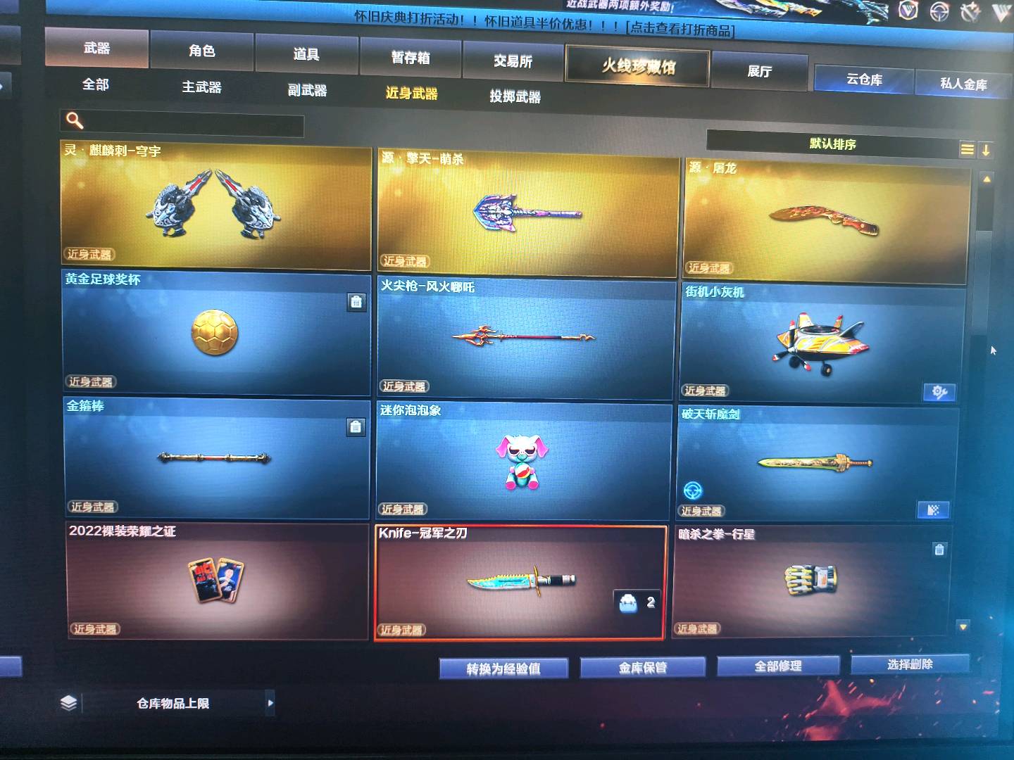 弹夹,防弹,热门音效卡;USP-雷暴,柯尔特-冠军之特,炽芒蝶刃,Knife-冠军之刃,隼,电竞教官-云悠悠,QBZ03-金色蔷薇,