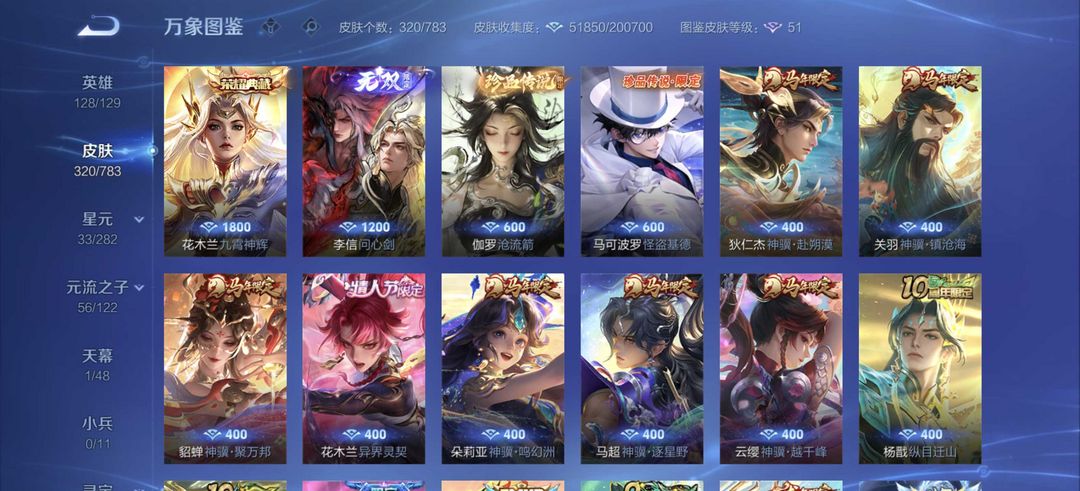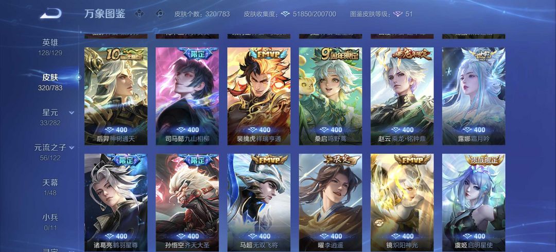 【非云直上】V10★皮肤榜一★539皮满典藏★鲁班时之奇旅会员★虞姬黛羽霜翎星元★吕布白金战神★全能大师★多金标★个性按键