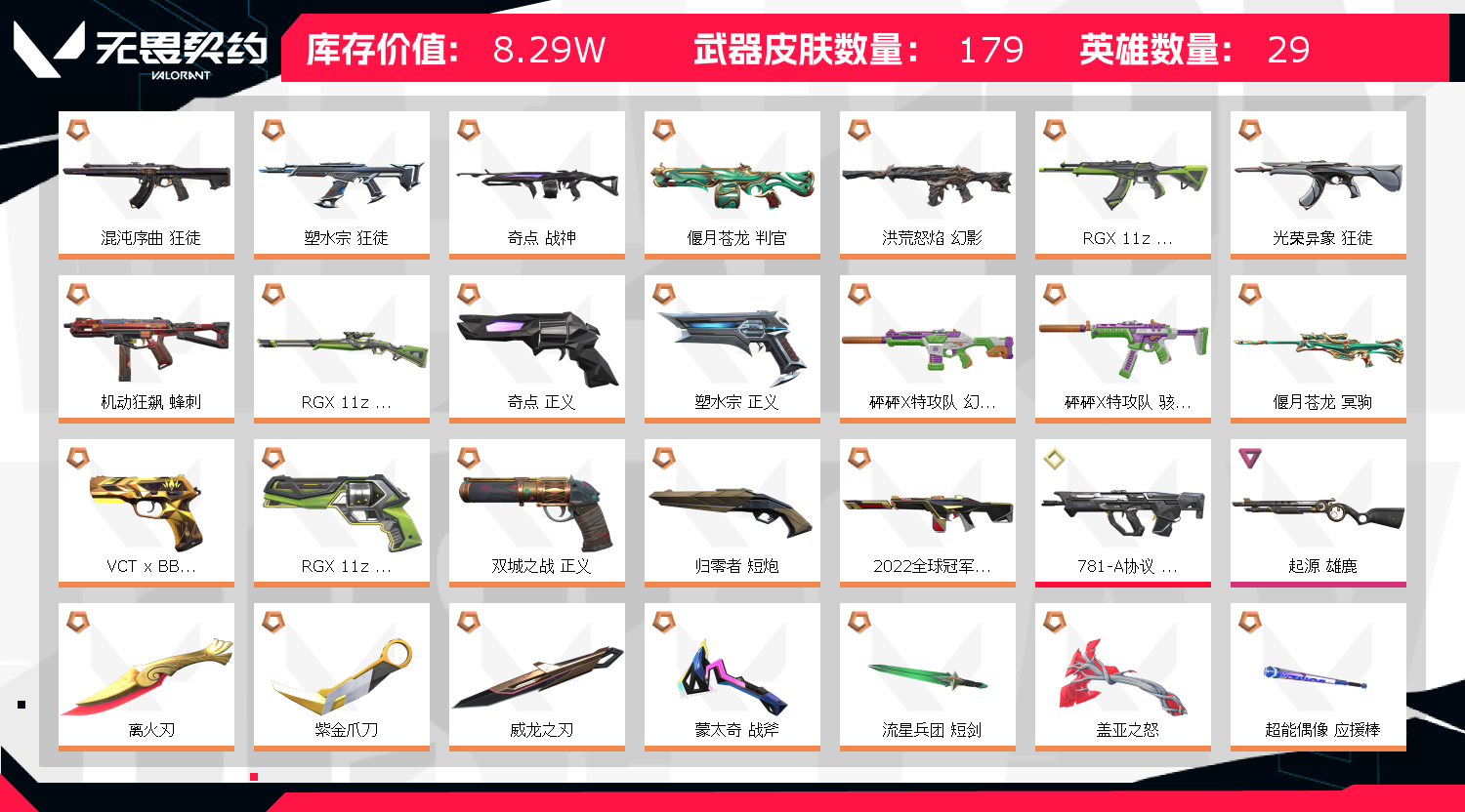 • 武器皮肤数量: 179