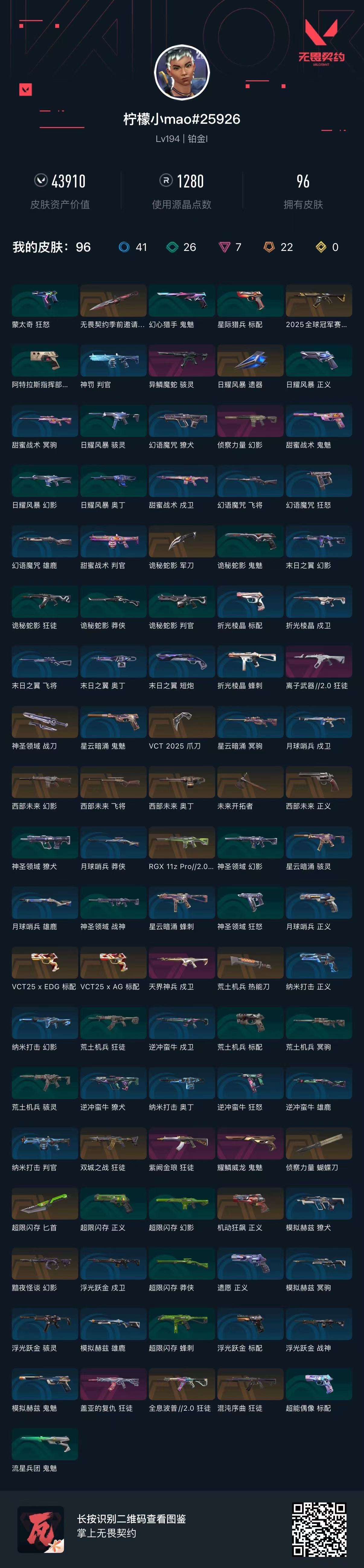 • 皮肤资产价值: 43910