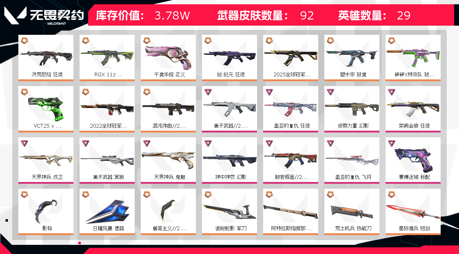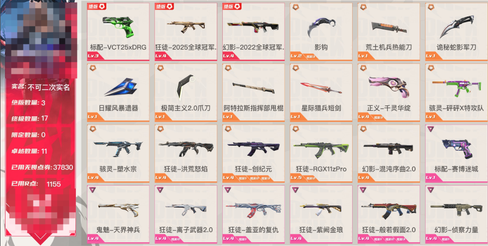 首页 > 租号大厅 > 无畏契约-wegame > wegame/wegame > 22+25冠军狂徒❤️25DRG标配❤️掠夺爪刀❤️创纪元洪荒RGX盖亚离子紫金狂徒