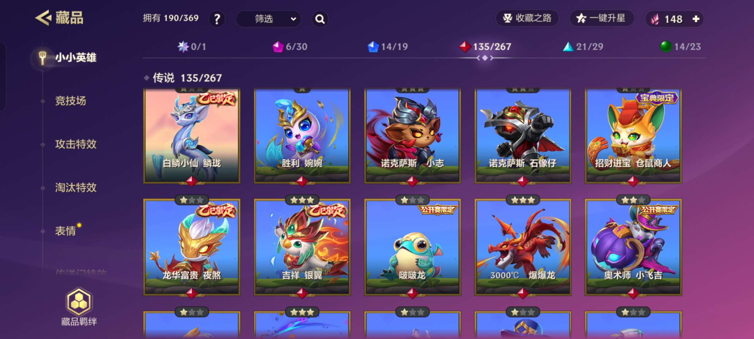 【金铲铲高藏品号】190藏品✨6神话✨135传说✨14小小英雄✨全系列限定/至臻✨公开赛限定全收集✨魔龙之巢等稀有竞技场✨
