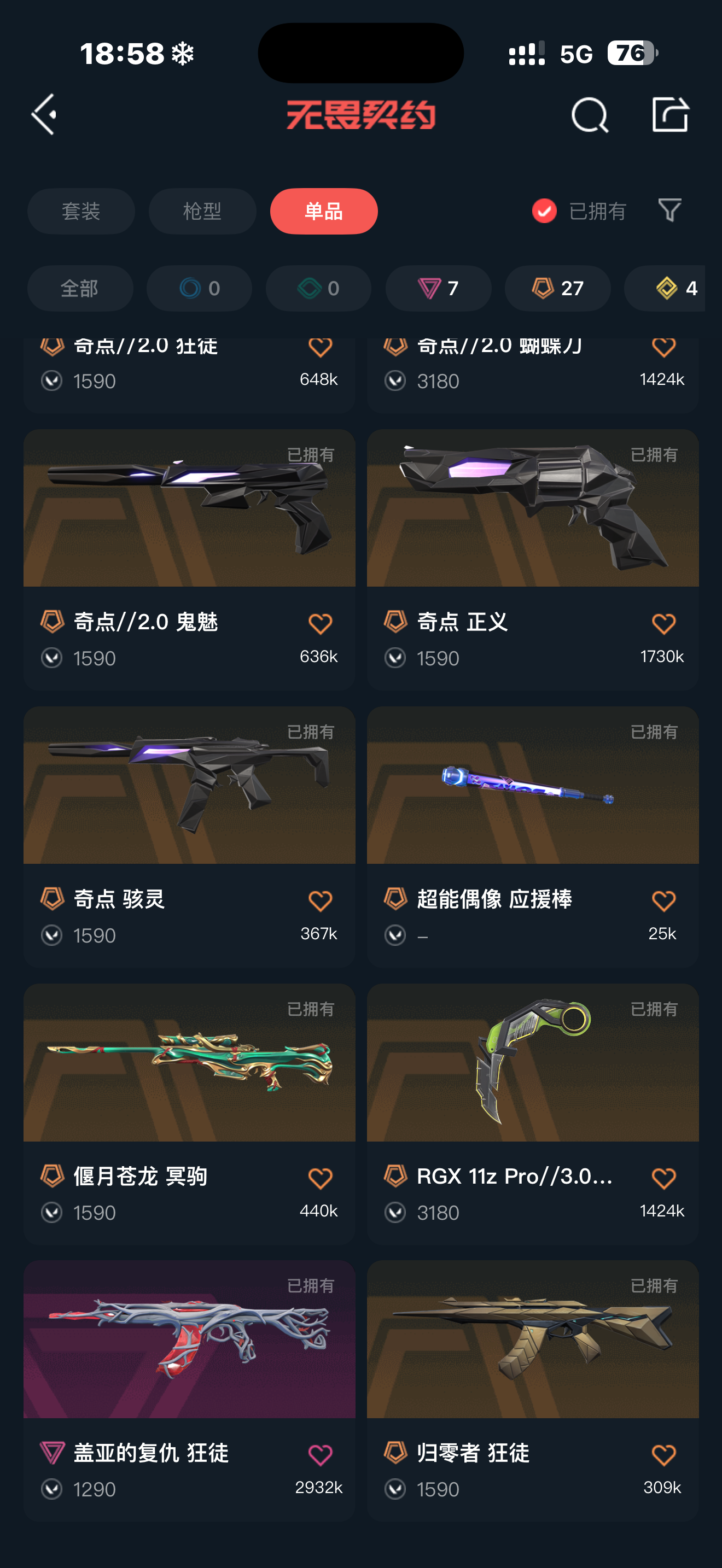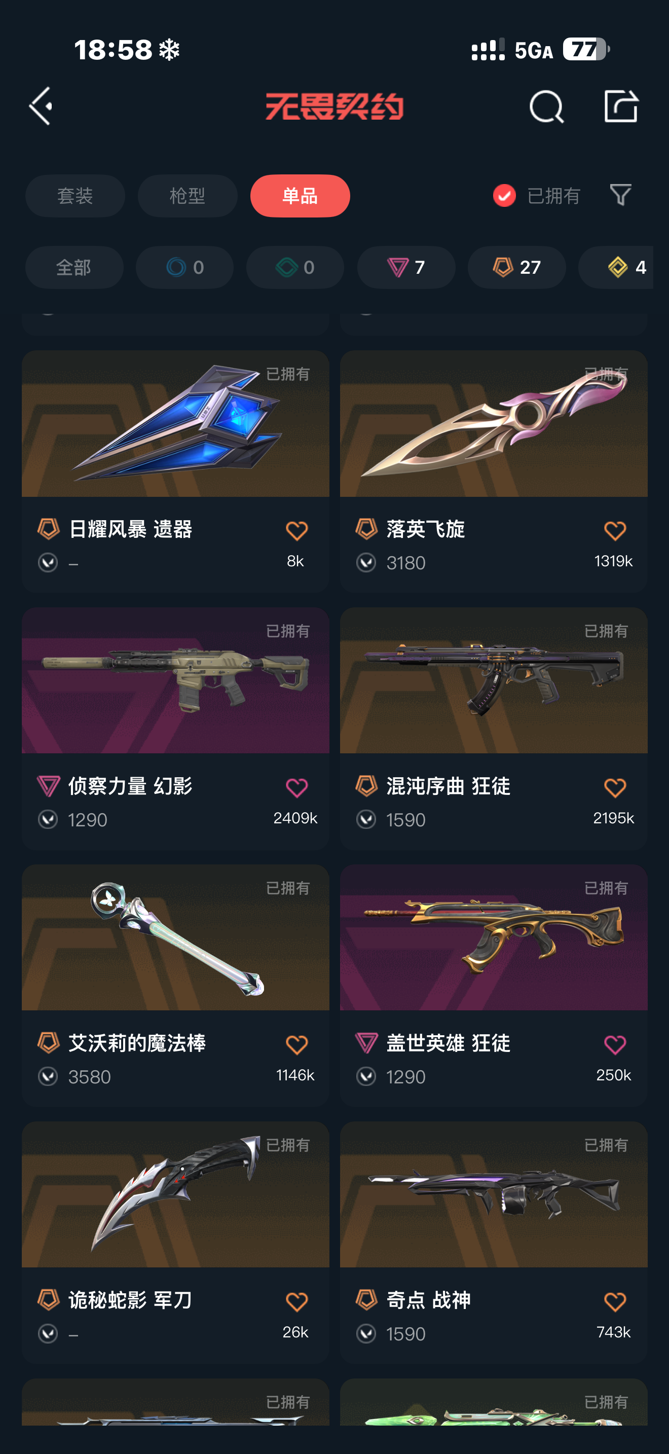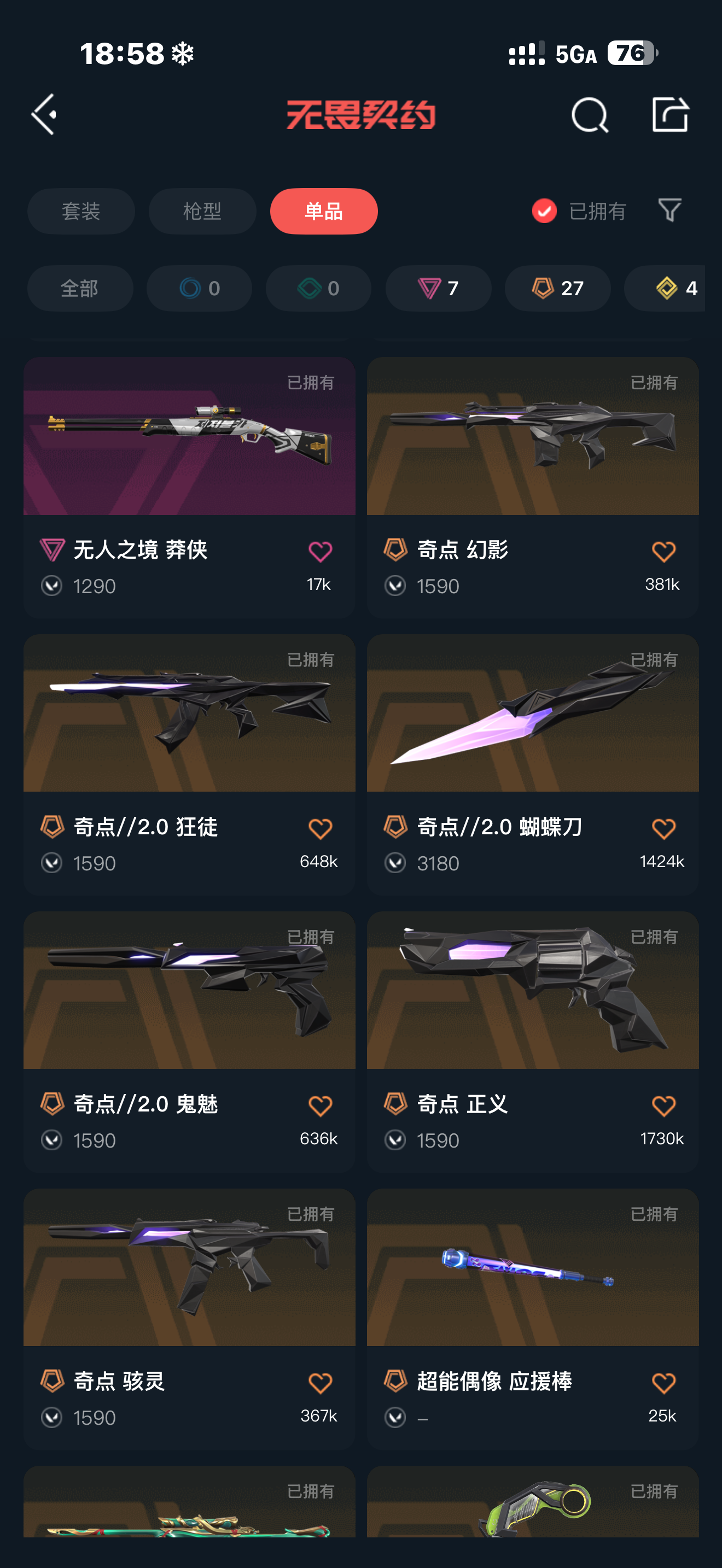 首页 > 租号大厅 > 无畏契约-wegame > wegame/wegame > 极品女号,白银下三号,奇点2.0套/猫猫套/莲花m4/盖亚ak/侦查m4/黑波之刃/显卡爪刀/塑水