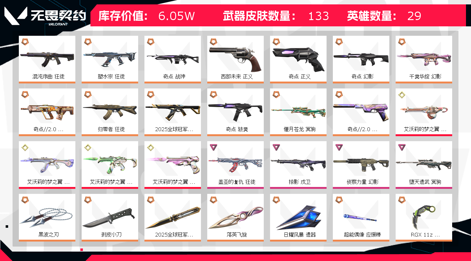 • 武器皮肤数量: 133
