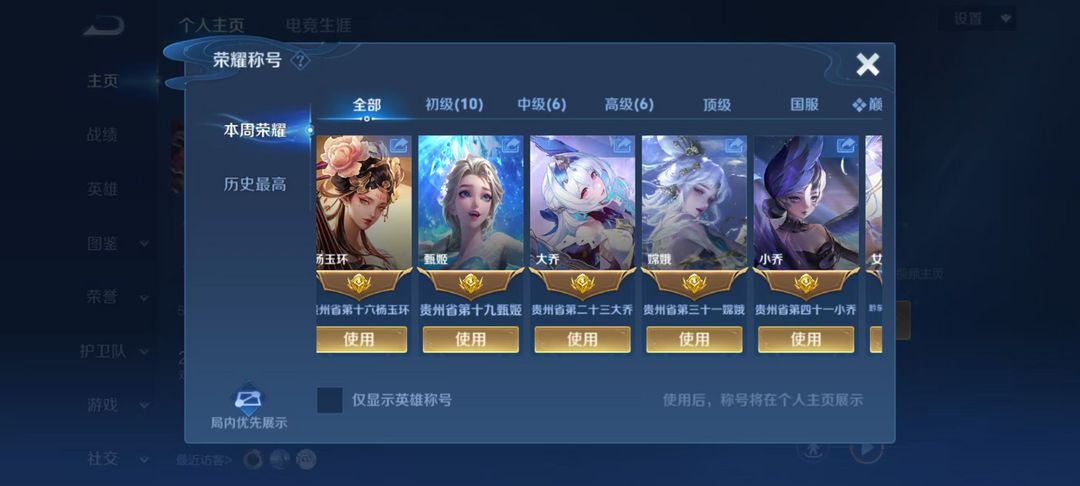 5省标甄姬杨玉环嫦娥大乔小乔⭐87段中路⭐巅峰⭐可排位/禁巅峰/禁挂机