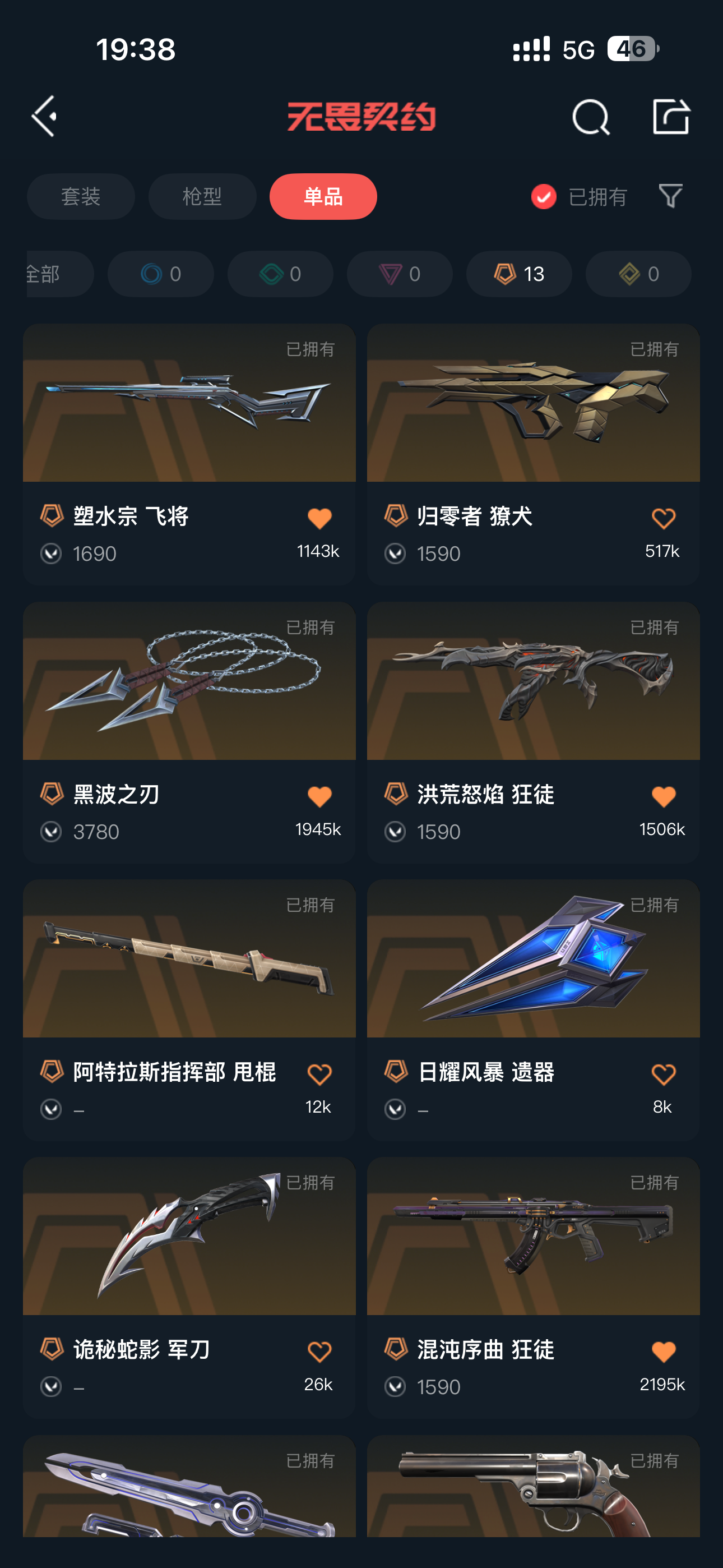 首页 > 租号大厅 > 无畏契约-wegame > wegame/wegame > 瓦精品号 黄金三 可排位 全英雄5卓越/13传奇 黑波之刃 流脓 混沌 堕天遗武 紫金标配 归零者